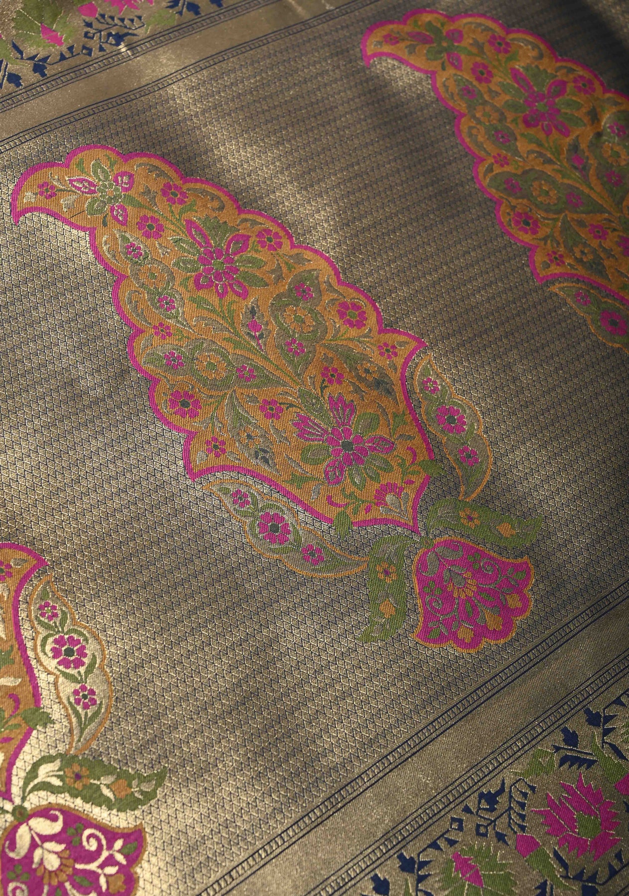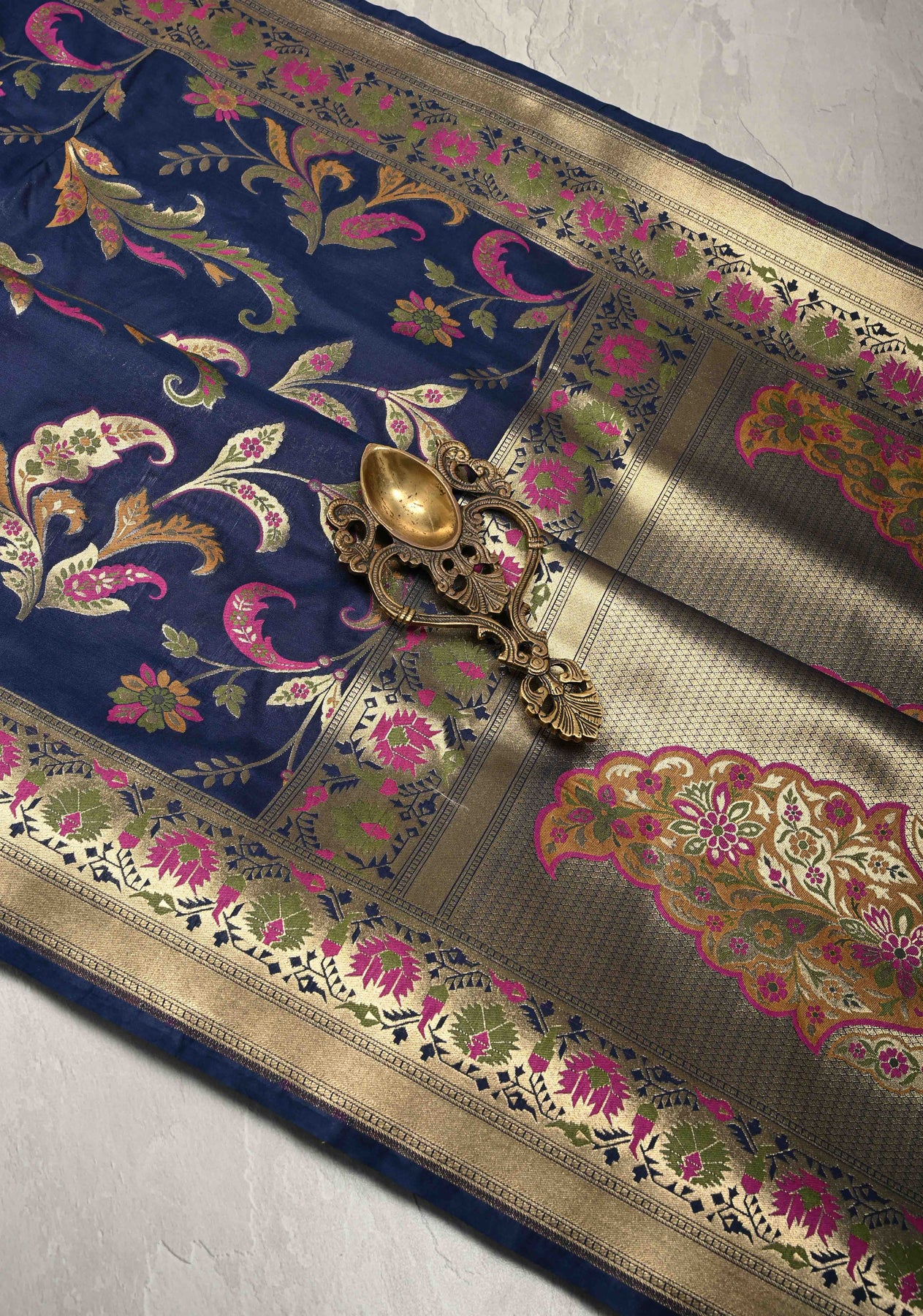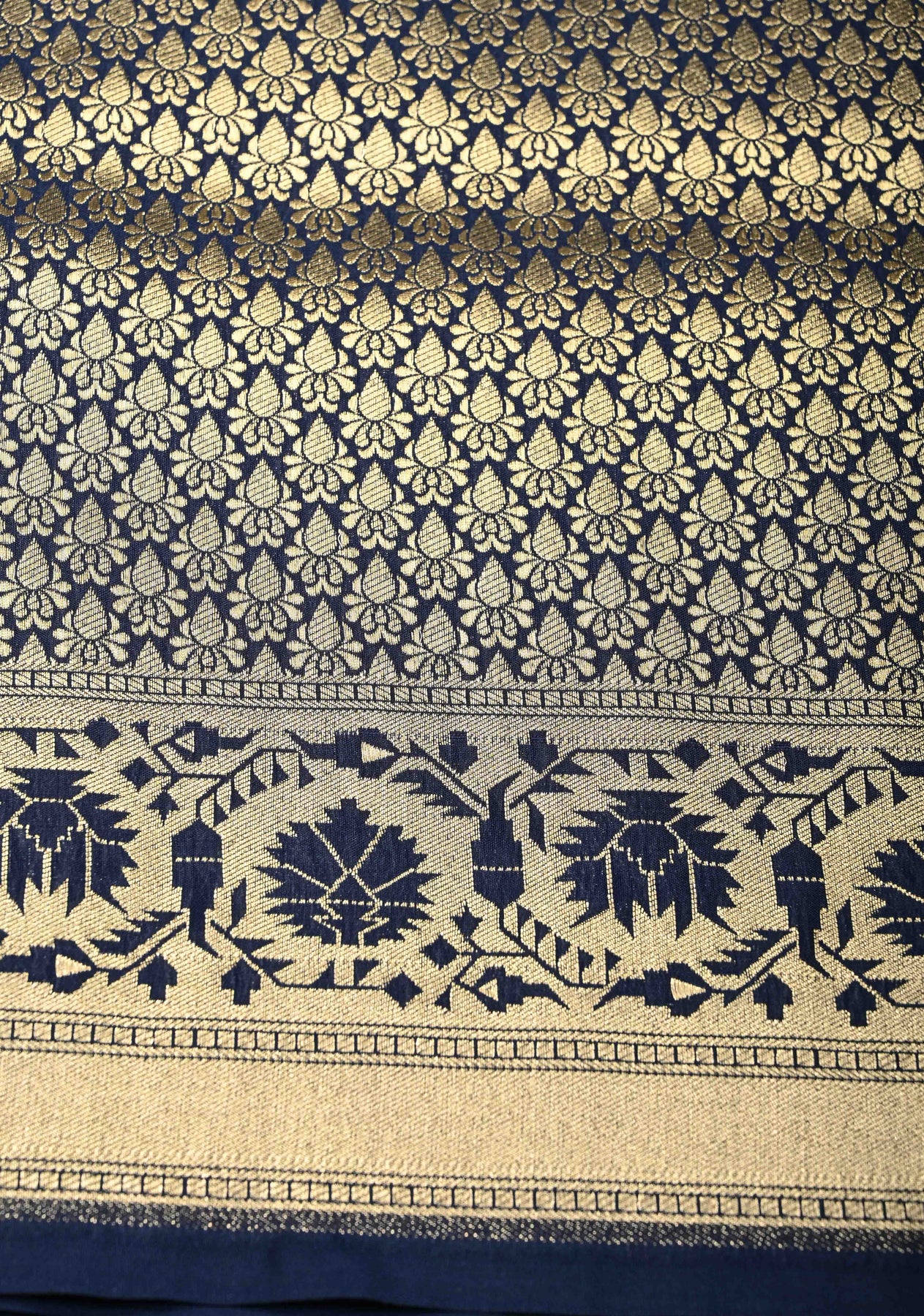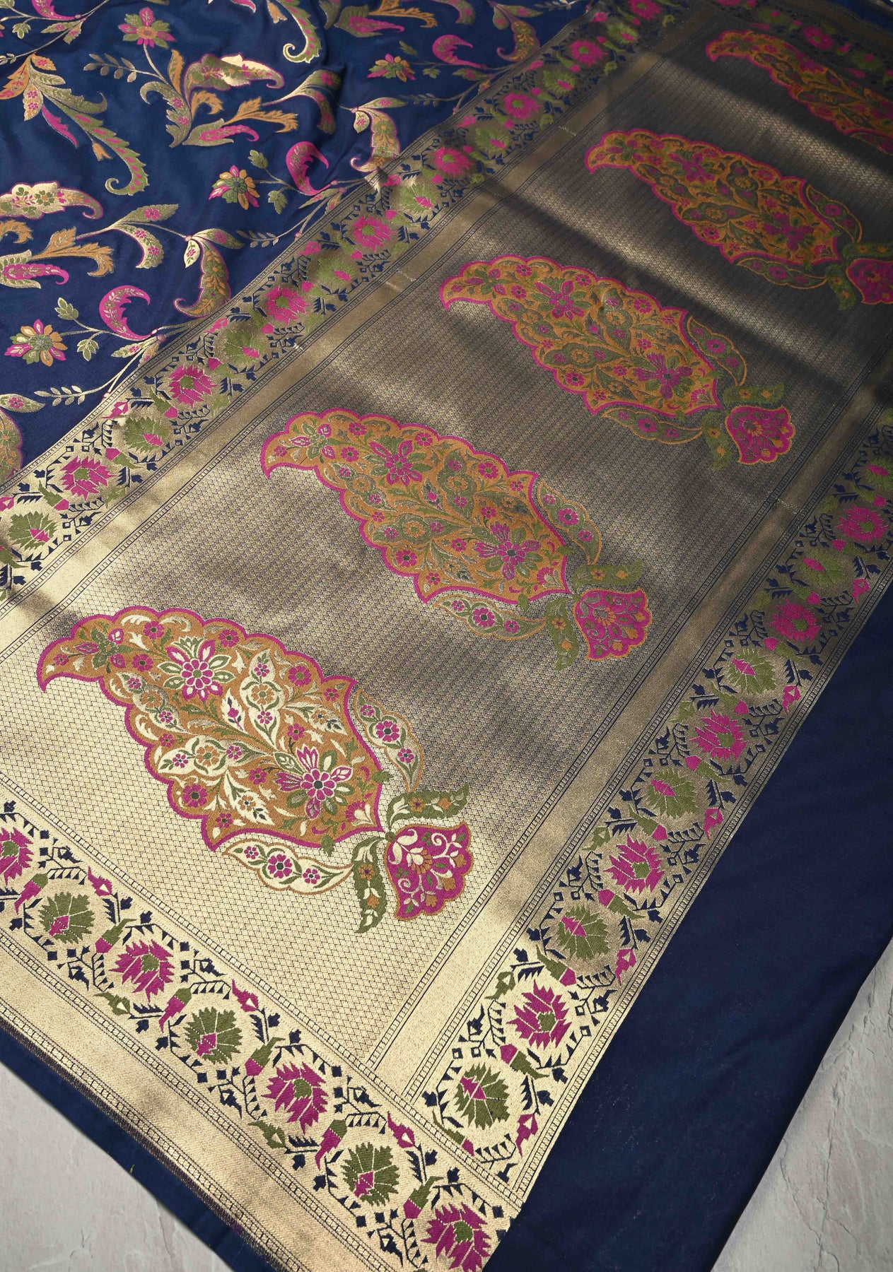 Navy Blue Semi Silk Saree with Floral Meenakari Jaal and Zari Border