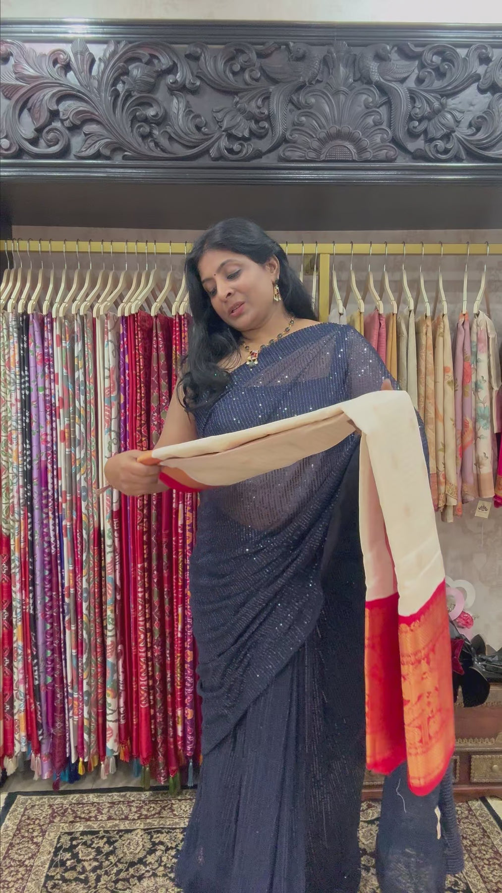 This saree is ready to wear with fall and Pico done. An unstitched blouse fabric is included.
