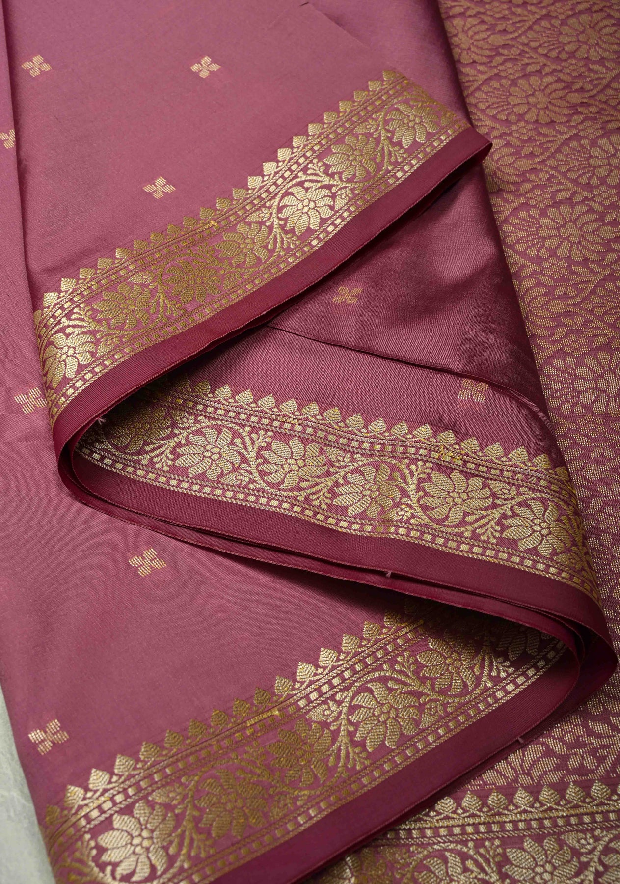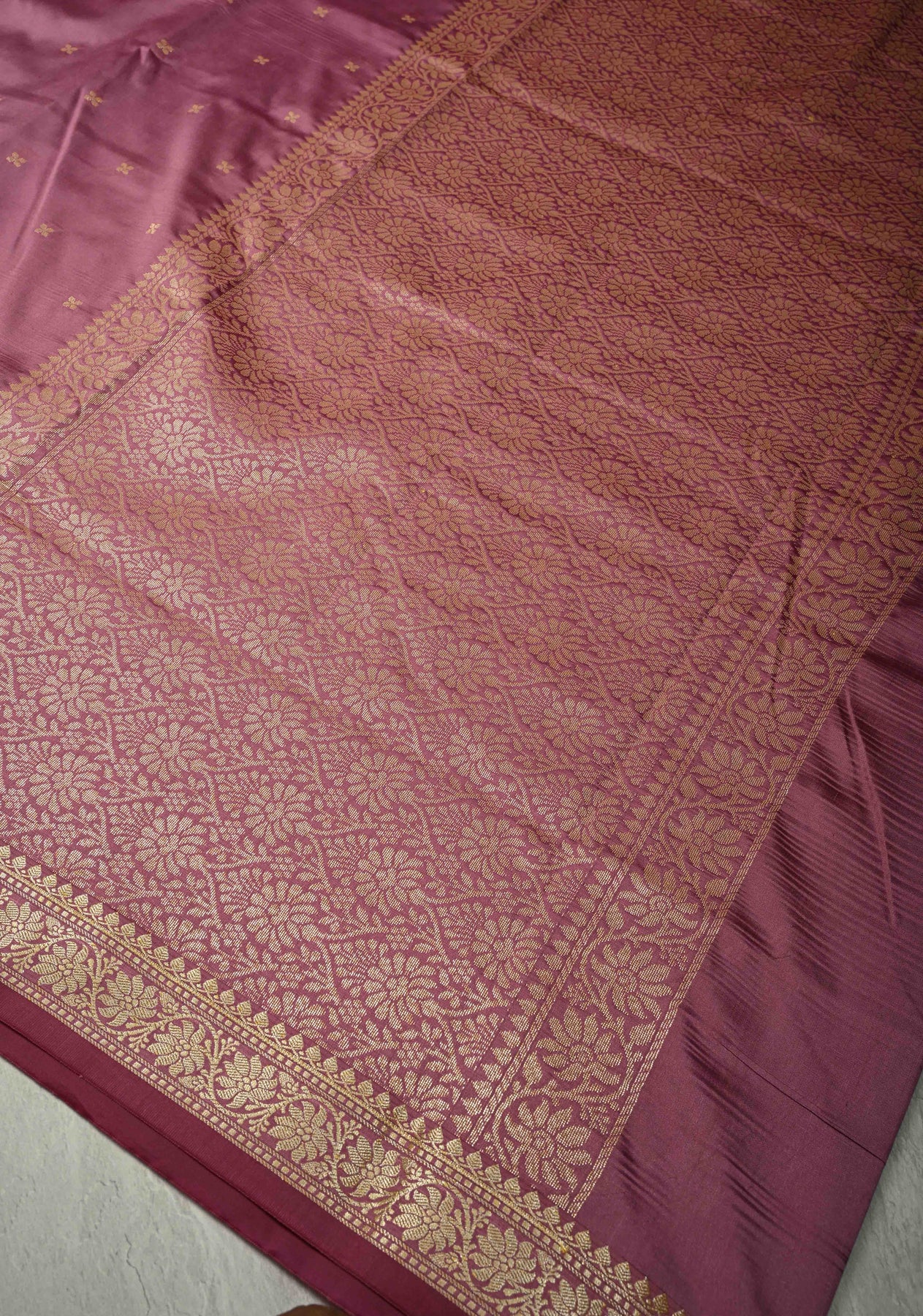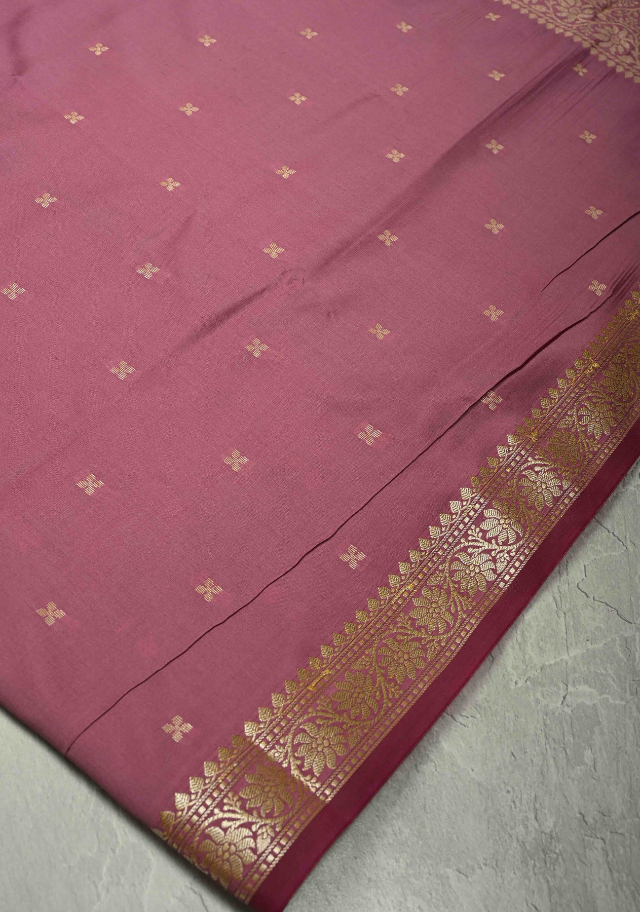 The Onion Pink Semi Silk Saree with Chunri Buttis is an exquisite blend of soft hues and timeless design. Made from semi-silk fabric, this saree offers a luxurious drape that enhances its graceful appeal. The delicate chunri butti pattern, scattered across the fabric, adds a touch of traditional artistry, while the minimal zari border provides a subtle shimmer that elevates the overall look without overpowering it. The onion pink color brings a fresh yet refined feel, making this saree an ideal choice for daytime celebrations, intimate gatherings, or festive occasions where you want to showcase understated elegance.