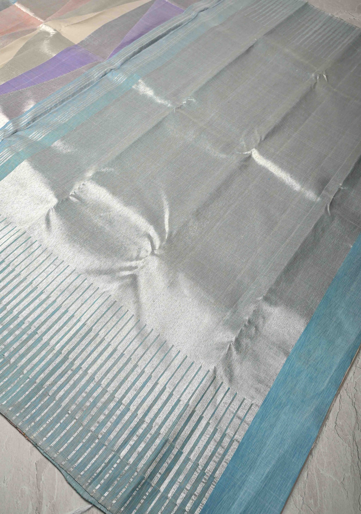 This Pastel Hued Kanjivaram Pure Silk Saree offers a delicate and contemporary take on traditional silk craftsmanship. Featuring soft, soothing pastel shades throughout, the saree is designed without a border, creating a sleek and modern silhouette. The body is beautifully adorned with an elegant triangle pattern woven in pure zari, adding subtle texture and shimmer without overwhelming the gentle color palette. Crafted from pure silk, this lightweight saree drapes effortlessly, making it an ideal choice for casual festivities, daytime events, or modern ethnic gatherings seeking understated elegance.