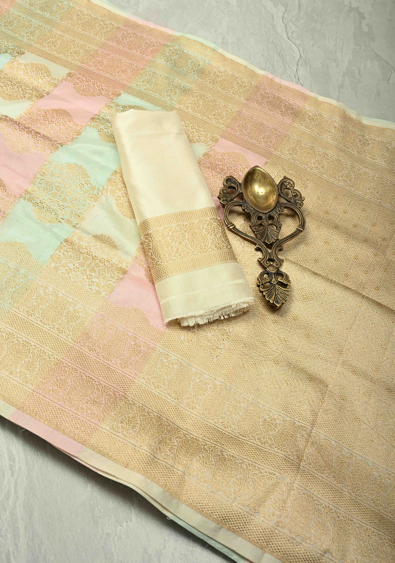 Pastel Hued Rangkaat Style Banarasi Katan Silk Saree and Floral Brocade and Zari Border | SILK MARK CERTIFIED