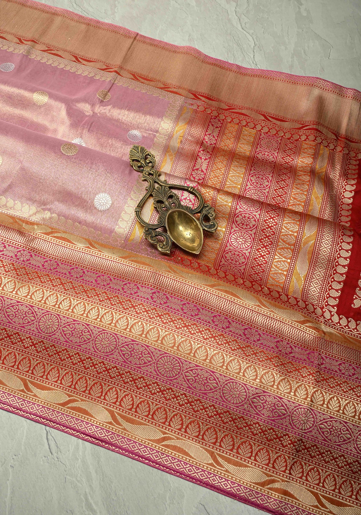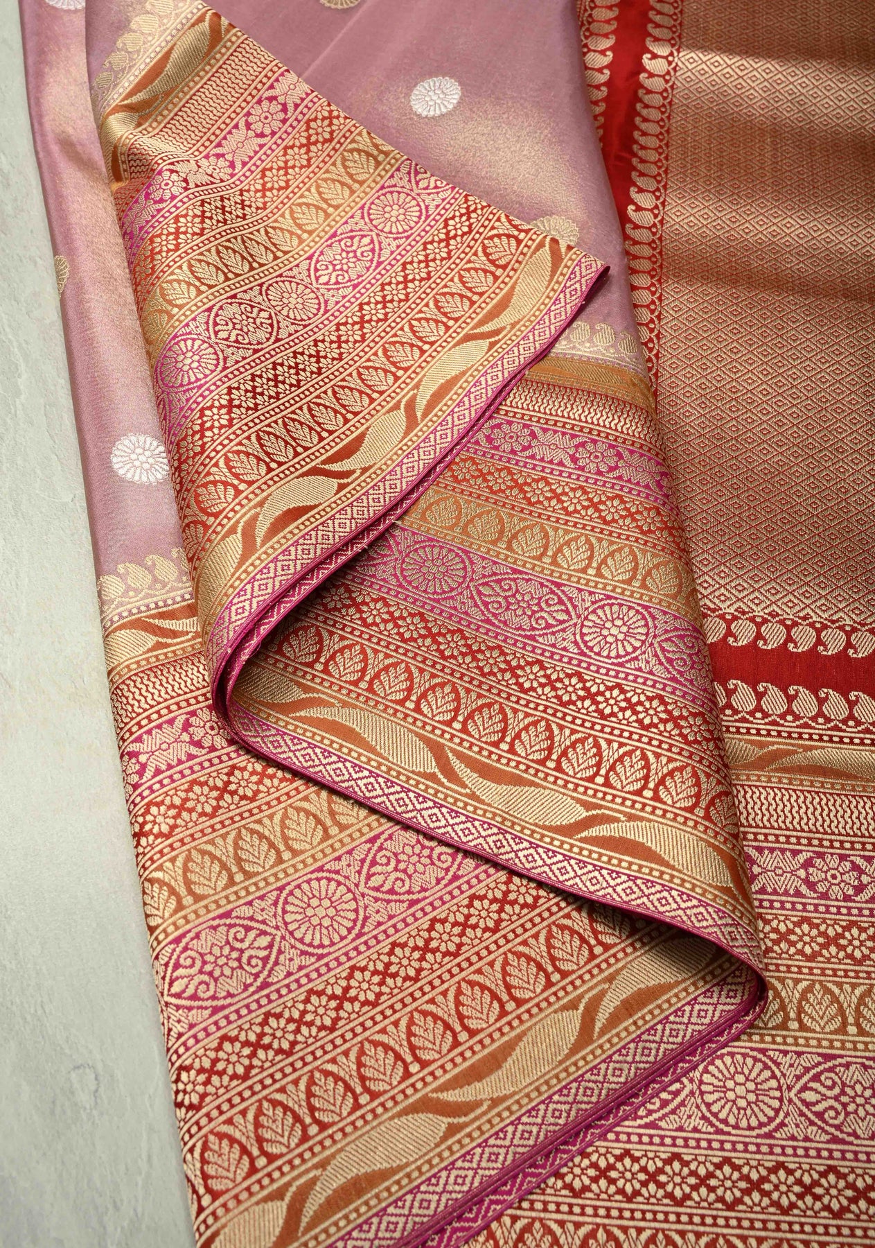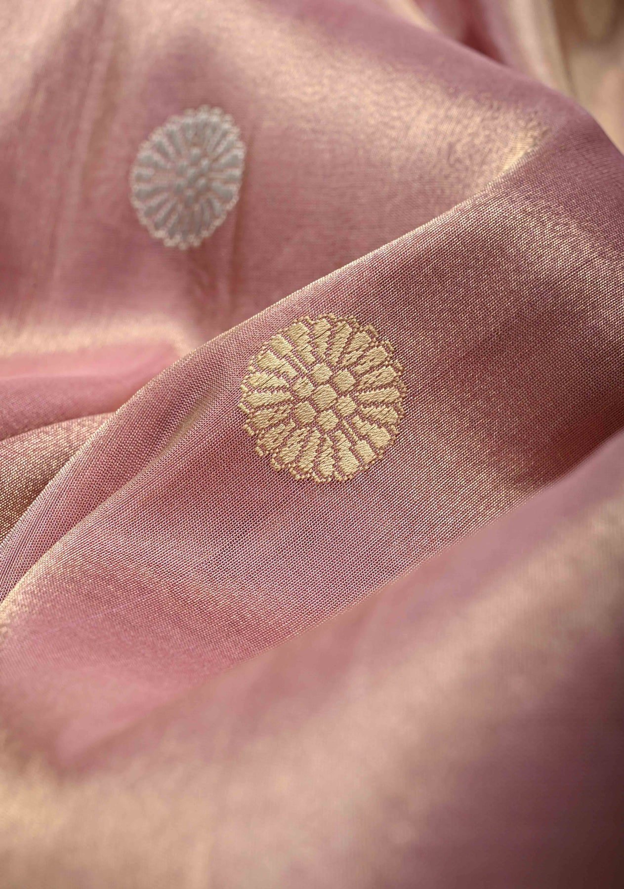 Pastel Pink Banarasi Katan Tissue Silk Saree with Sona Rupa Buttas and Meenakari Wide Zari Border | SILK MARK CERTIFIED