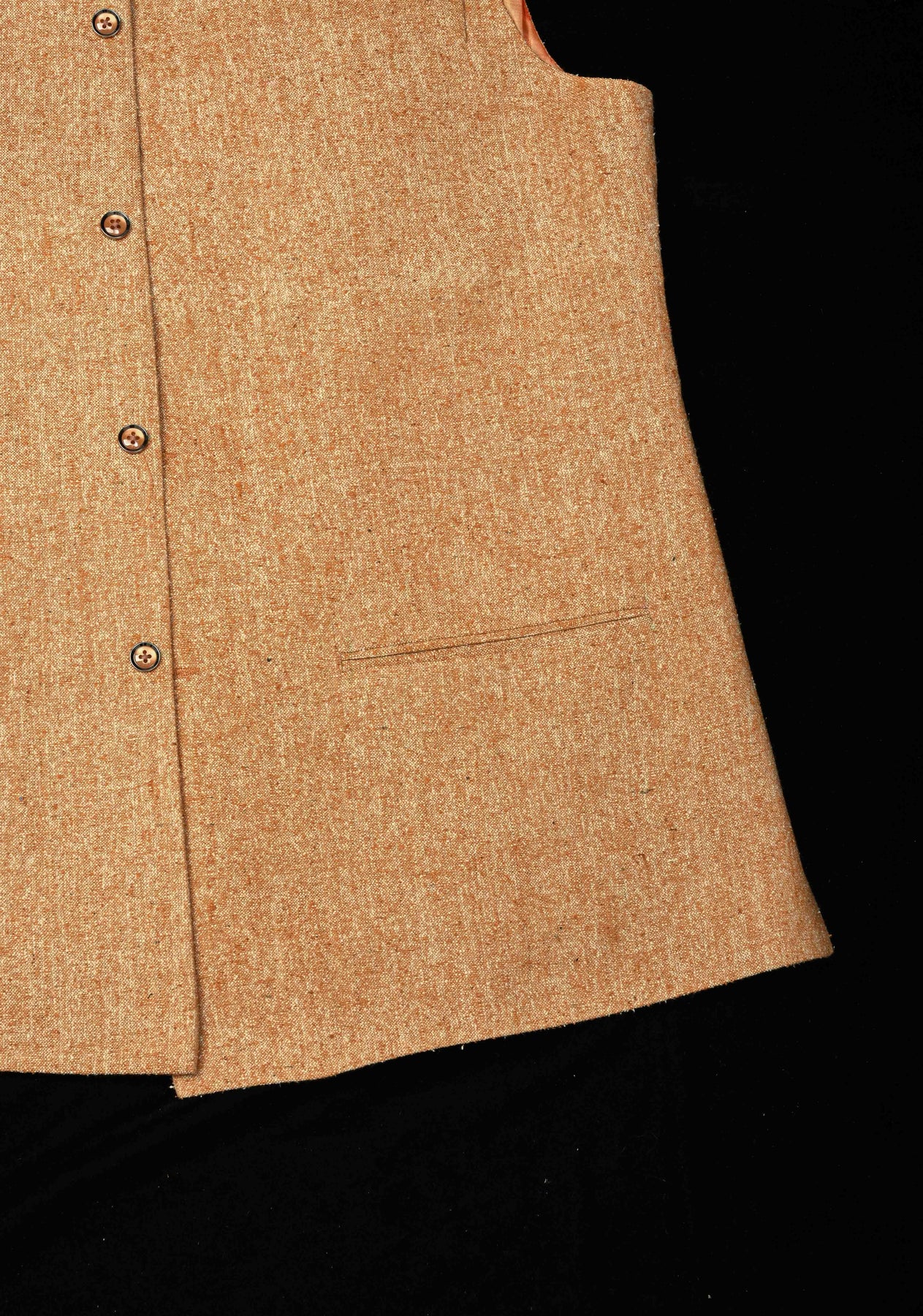 This Peach Men’s Jute Silk Nehru Jacket combines subtle elegance with traditional Indian craftsmanship. Made from jute silk, it features a soft texture, lightweight comfort, and a gentle sheen that complements its soothing peach hue. Designed with a classic Nehru collar and tailored fit, it pairs effortlessly with kurtas, shirts, or trousers, making it ideal for weddings, festive occasions, or formal gatherings. Versatile and stylish, this waistcoat adds a refined ethnic touch to any ensemble.