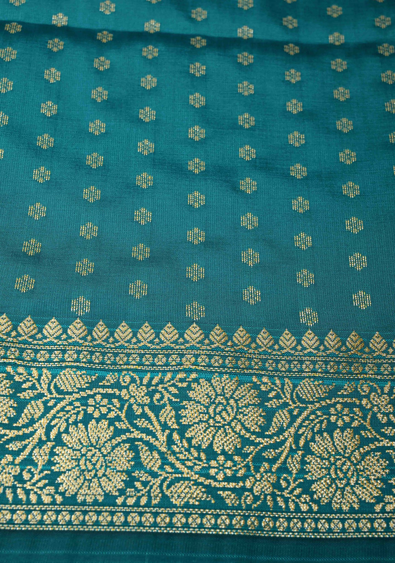 The Persian Green Semi-Silk Saree with Floral Zari Border exudes grace and sophistication, perfect for festive and special occasions. Made from semi-silk fabric, it features a soft, lustrous drape that complements every silhouette. The deep Persian green shade radiates elegance, while the intricately woven floral zari border adds a delicate, regal touch, enhancing its traditional appeal. Pair it with a matching or contrasting blouse and elegant jewelry for a timeless ethnic look.