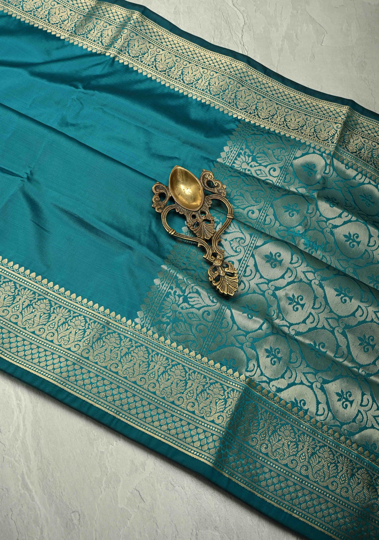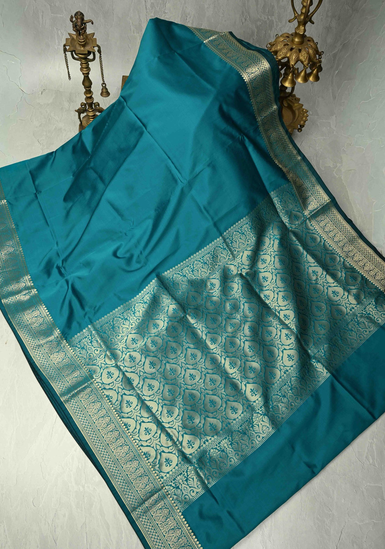 The Persian Green Semi-Silk Saree with Zari Border beautifully blends traditional charm with modern elegance. Crafted from semi-silk fabric, it offers a subtle sheen and a graceful drape that flatters every silhouette. The Persian green hue exudes sophistication and serenity, while the intricate golden zari border adds a touch of royal allure. Perfect for weddings, festive occasions, and cultural gatherings, this saree pairs wonderfully with gold jewelry and a matching or contrasting blouse for a refined ethnic look.
