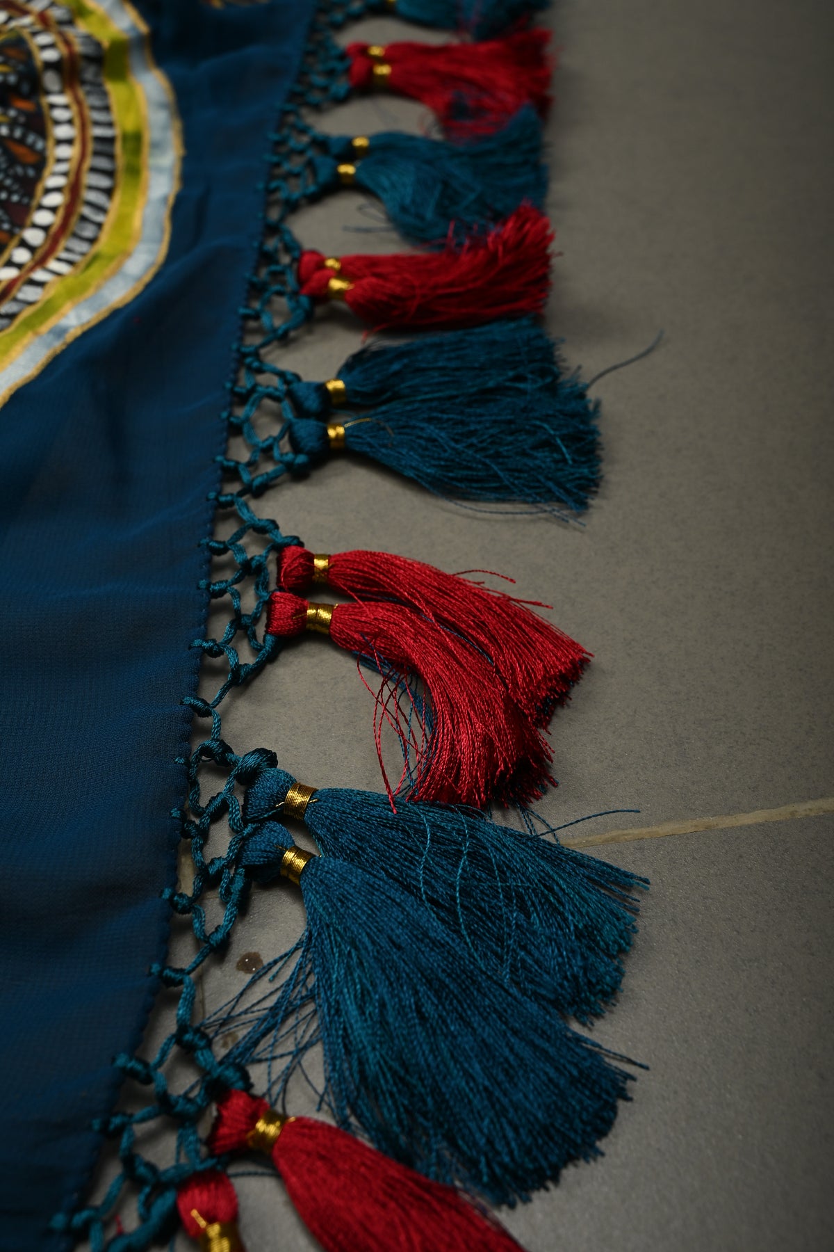 The saree is ready to wear with fall and pico complete. Handmade silk tassels add more beauty