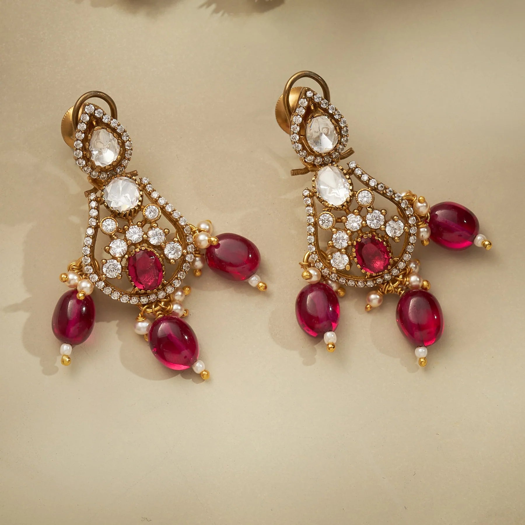 Sindura Victorian Choker Set features an exquisite blend of traditional and contemporary design. Crafted with lustrous Ruby stones, brilliant Moissanite, and sparkling Cubic Zirconia accents, this choker showcases intricate Floral detailing throughout. Ruby beads and delicate drops add movement and elegance, creating a sophisticated piece perfect for special occasions. The Victorian-inspired aesthetic combines timeless craftsmanship with modern brilliance, making it an ideal choice for those seeking refined jewellery with distinctive character and enduring appeal.