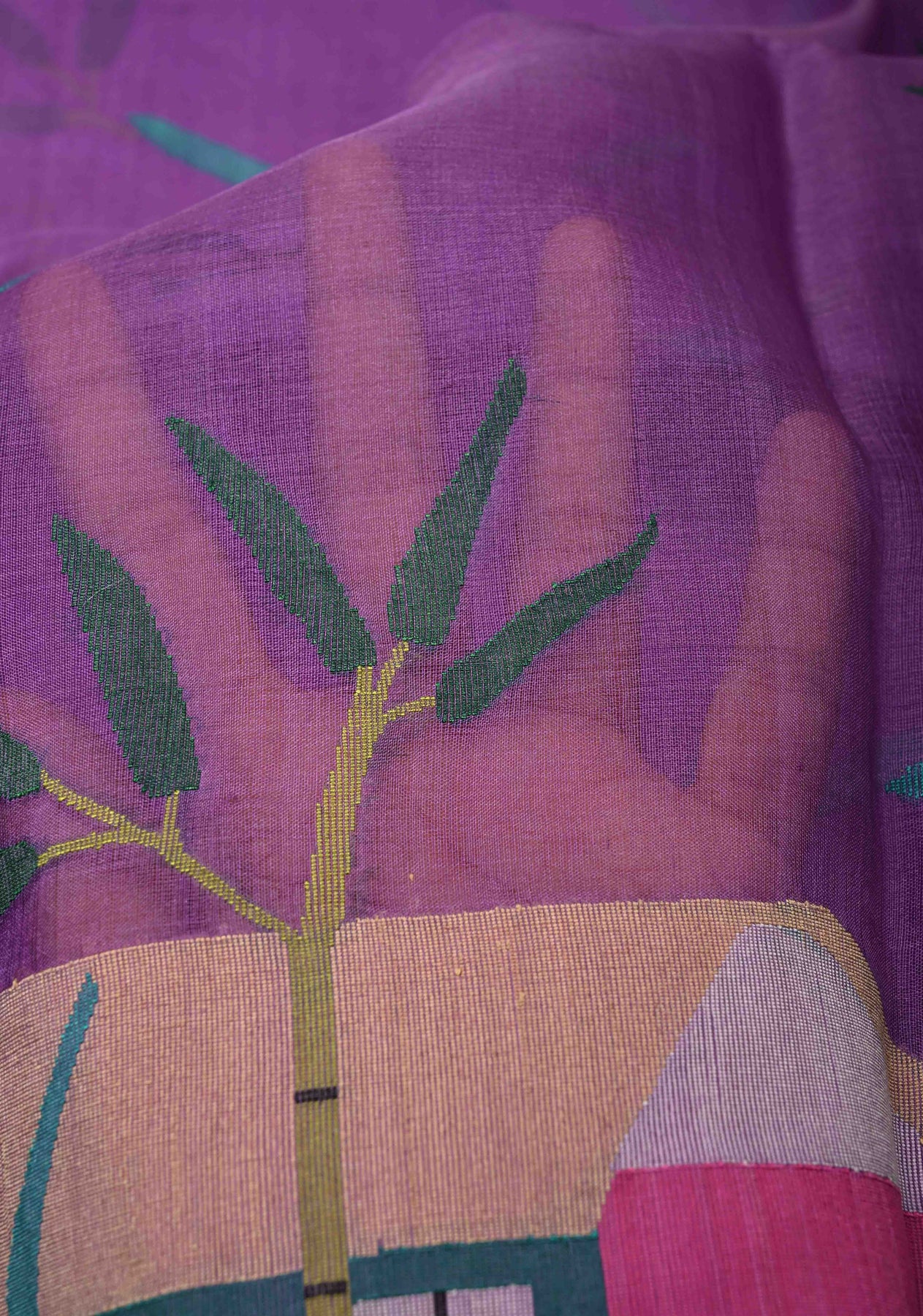 The soothing lavender shade adds a dreamy charm, making it ideal for daytime functions, festive celebrations, office events, cultural gatherings, and special occasions. Refined, breathable, and timeless, this saree is perfect for those who love understated luxury.