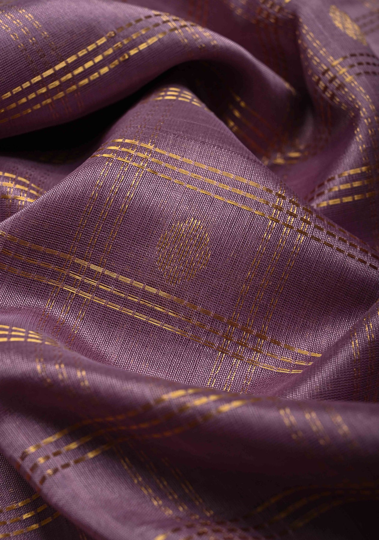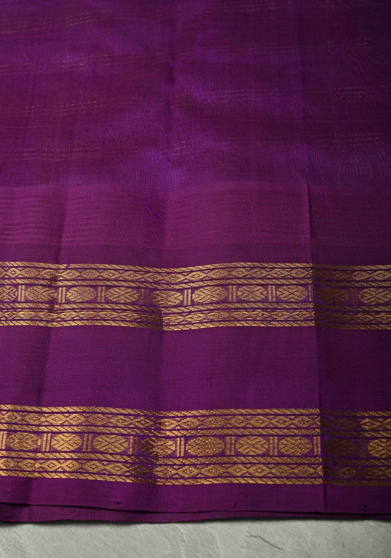 The Purple Kanchi Silk Cotton Saree with Zari Checks is an exquisite combination of traditional artistry and modern charm. The Purple hue gives the saree a delicate, ethereal quality, while the intricate zari checks across the body lend a timeless appeal. Adding to its beauty are the finely woven zari buttas, which scatter delicately across the fabric, creating an elegant texture. The saree is finished with a striking Rettaipet zari border, known for its detailed, rich patterns that enhance its regal look. Handcrafted with a luxurious silk-cotton blend, this 100% handloom saree offers a perfect balance of comfort, breathability, and opulence, making it ideal for weddings, festivals, and other special occasions.