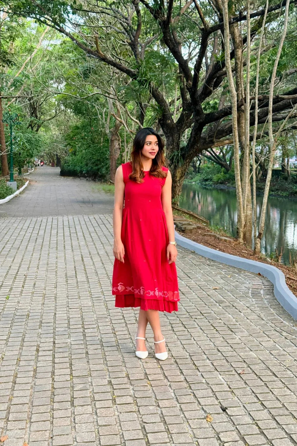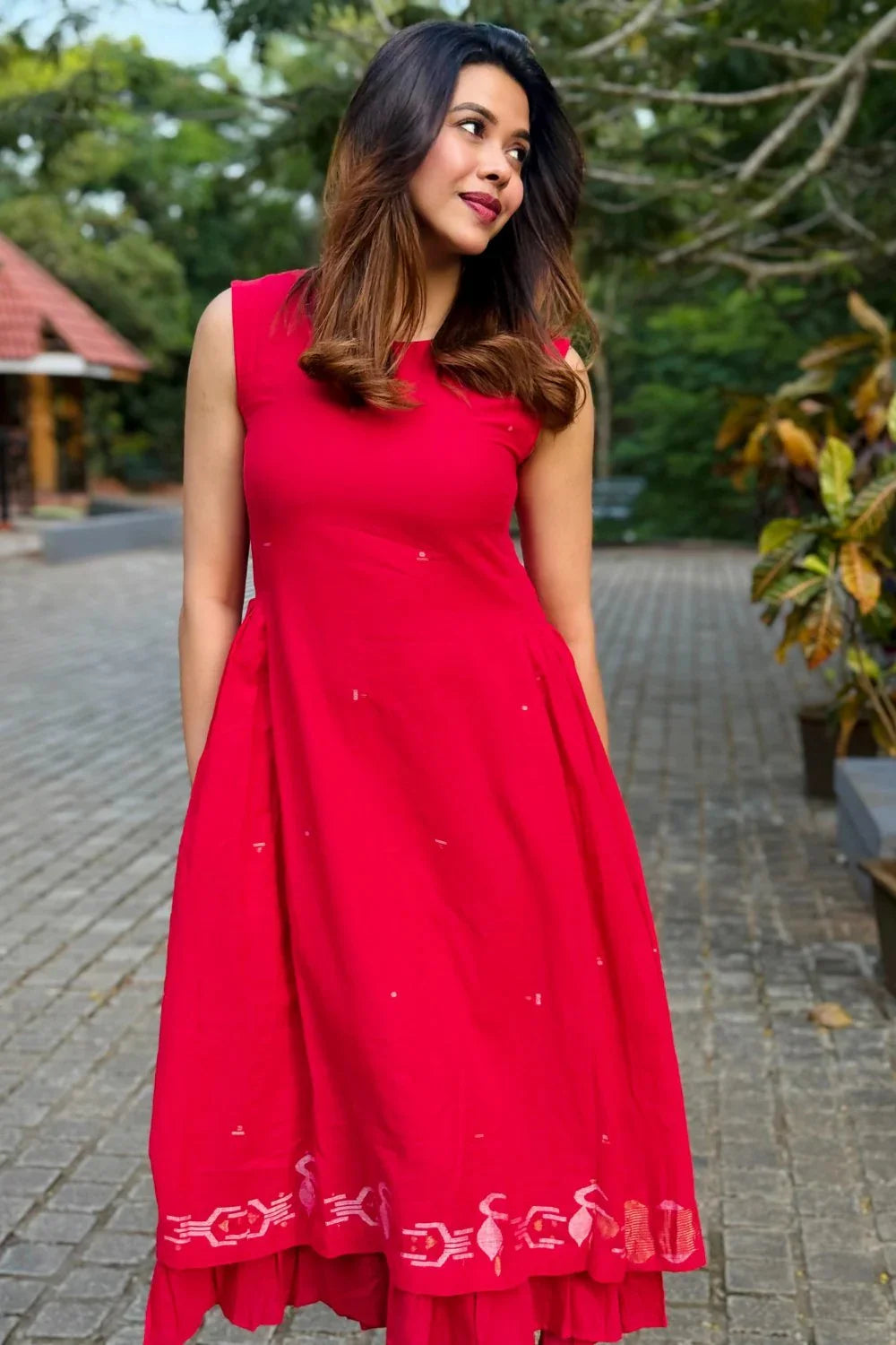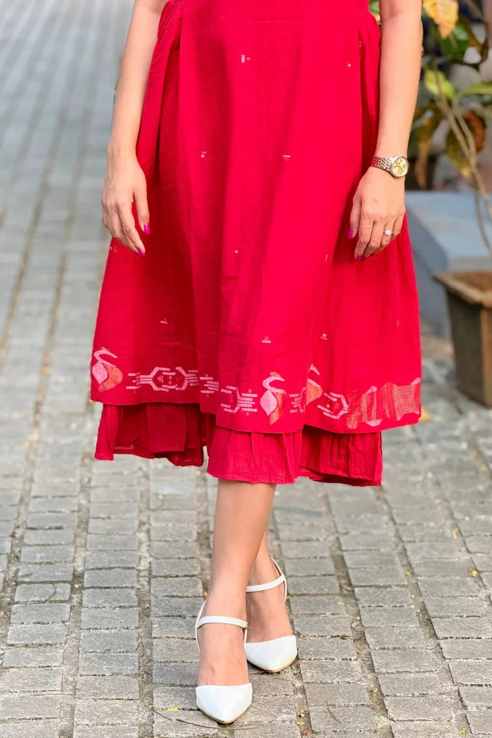 Radiance Red Layered Jamdani Dress
