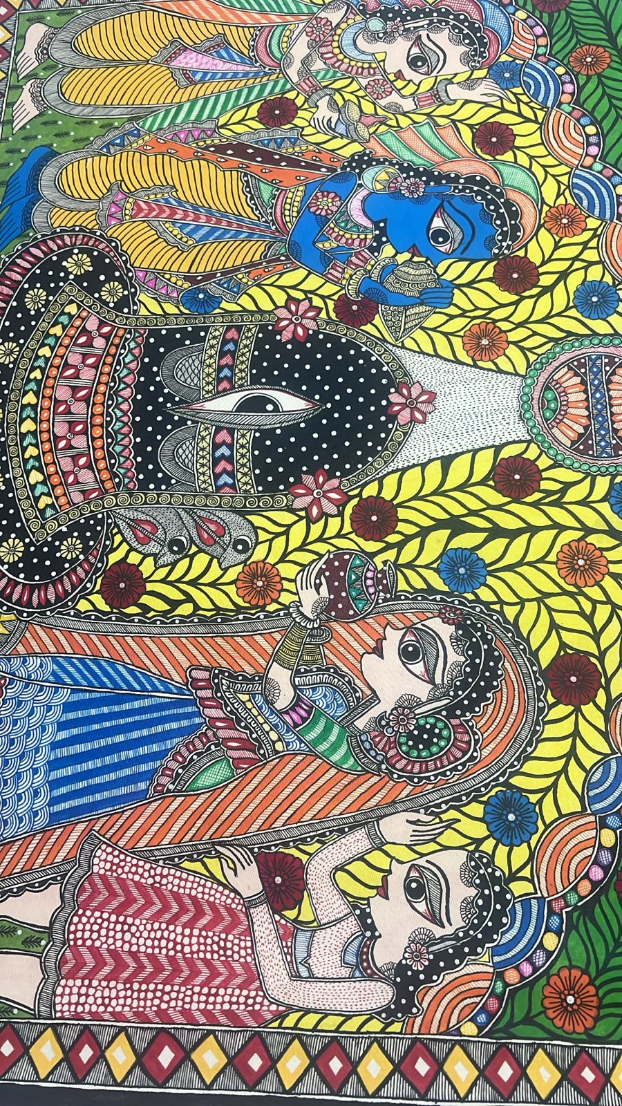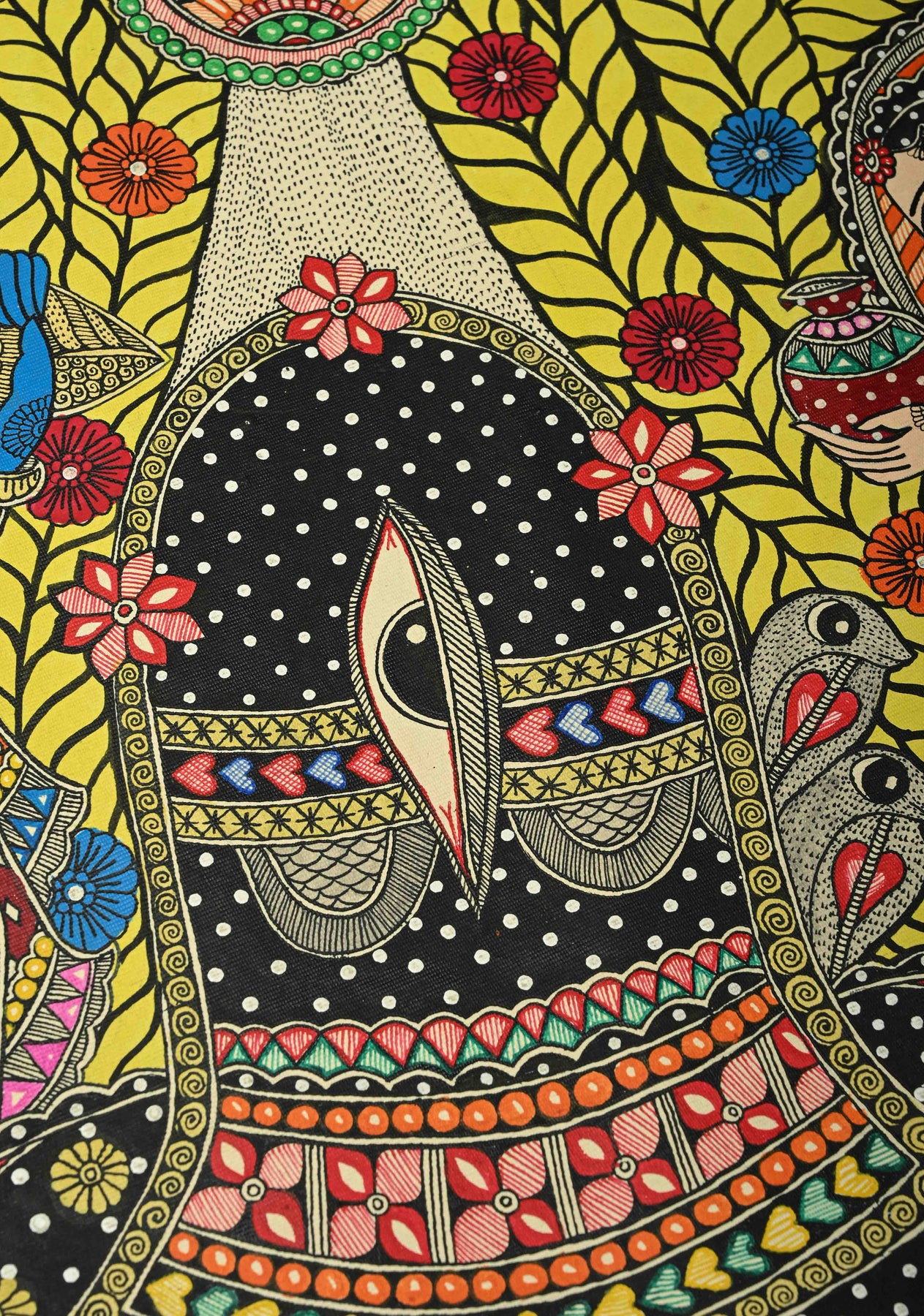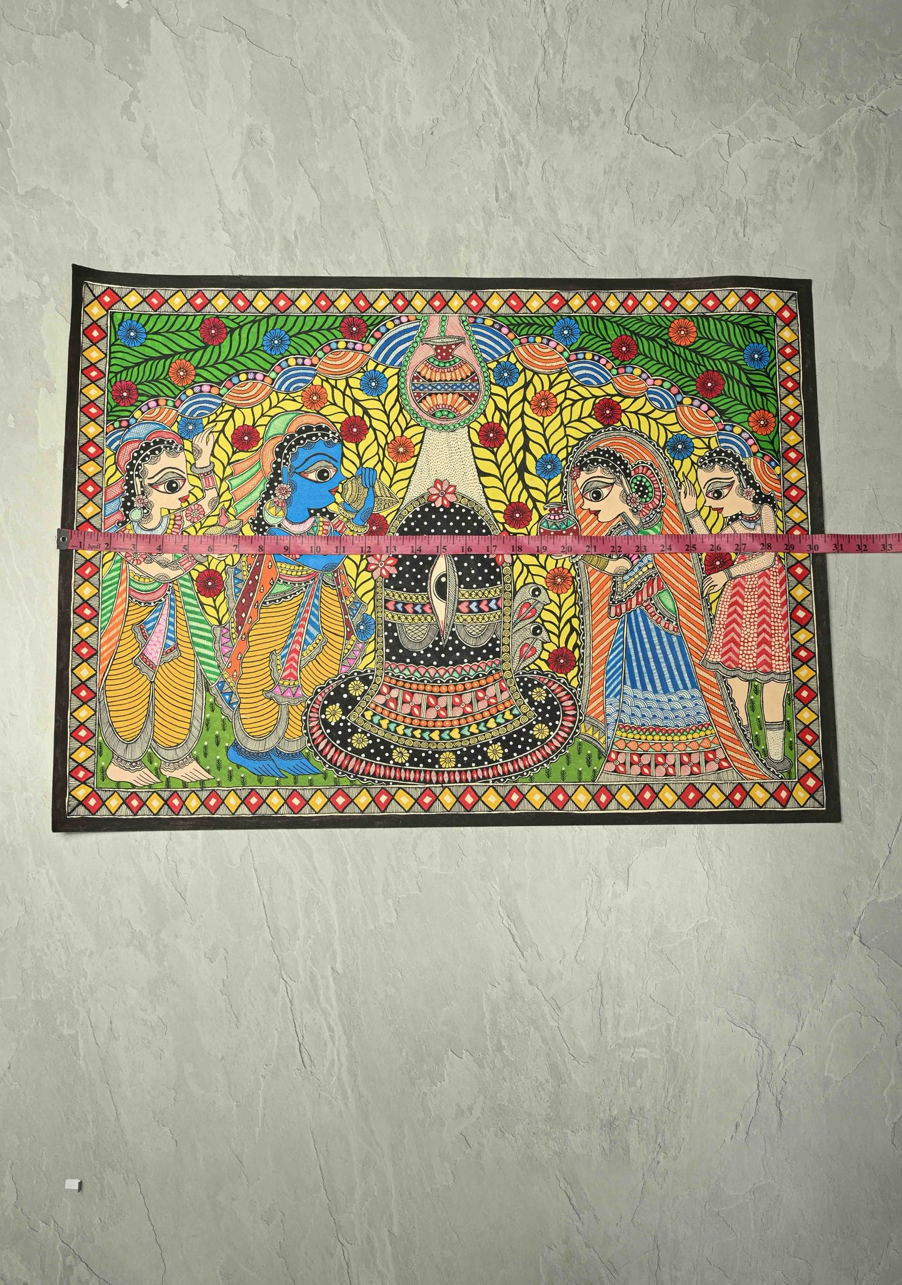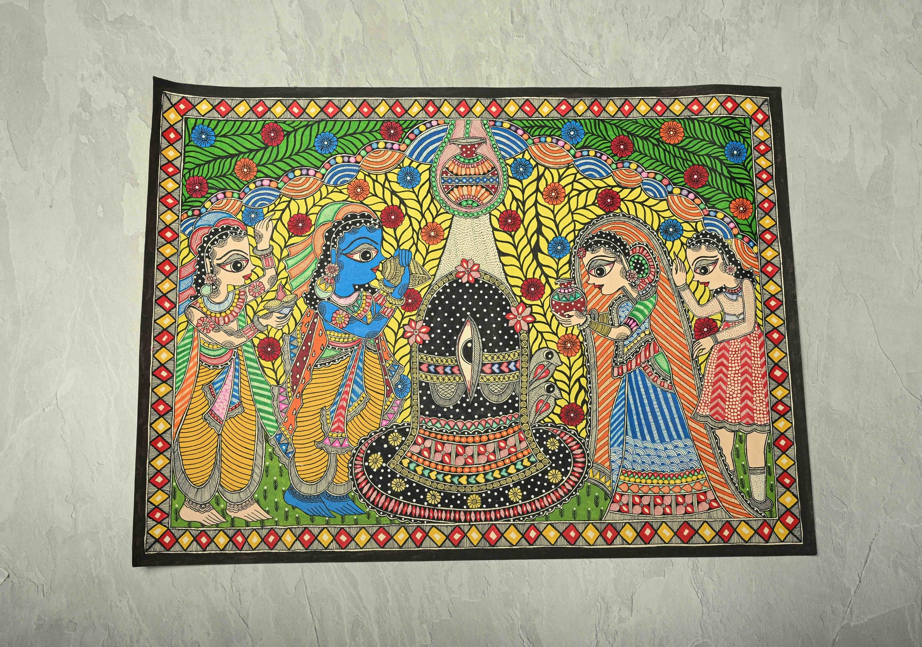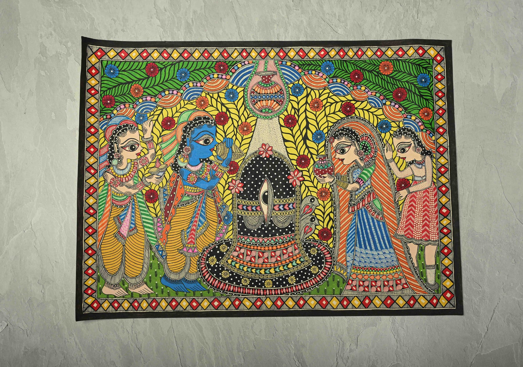 This Rama Praying to Shiva at Rameswaram Kalamkari wall painting beautifully brings to life a sacred moment from Indian mythology on traditional Kalamkari fabric. Depicting Lord Rama in devotion before Lord Shiva at the holy site of Rameswaram, the artwork showcases intricate hand-painted details and the delicate natural dye work characteristic of authentic Kalamkari art. The unframed piece, measuring 30 x 22 inches, allows for versatile display options while preserving the tactile beauty of the fabric. Its rich storytelling, combined with the timeless appeal of Kalamkari craftsmanship, makes it an exquisite addition to spiritual or cultural home decor, evoking both reverence and artistic admiration