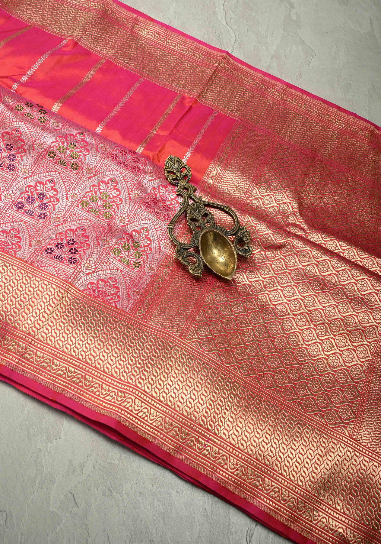 *Note: Indulge in the exquisite artistry of this hand-woven saree, where slight inconsistencies may be found. These delightful imperfections are a testament to its authenticity and add to its unparalleled beauty. Embrace its one-of-a-kind nature and appreciate the craftsmanship behind it.