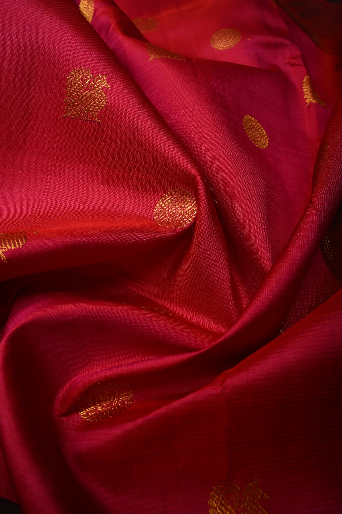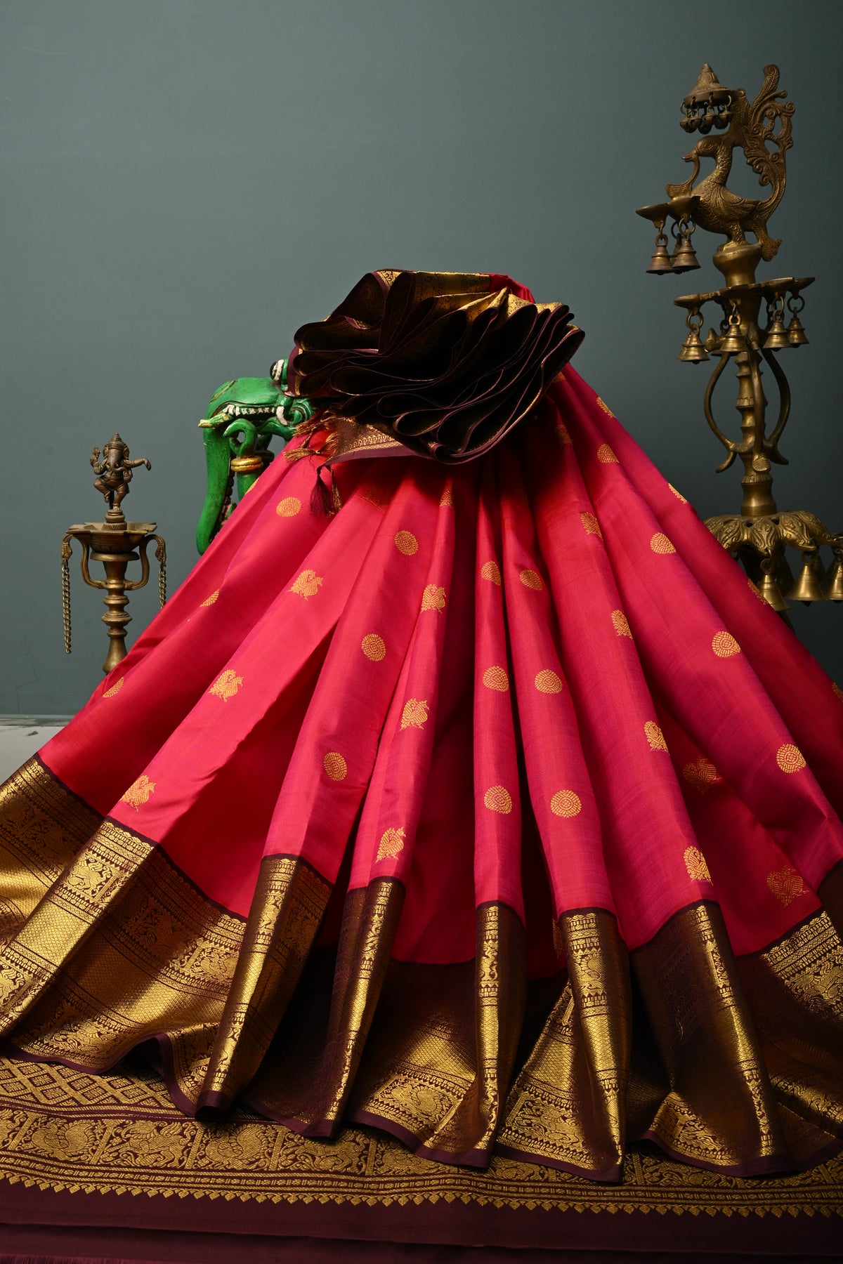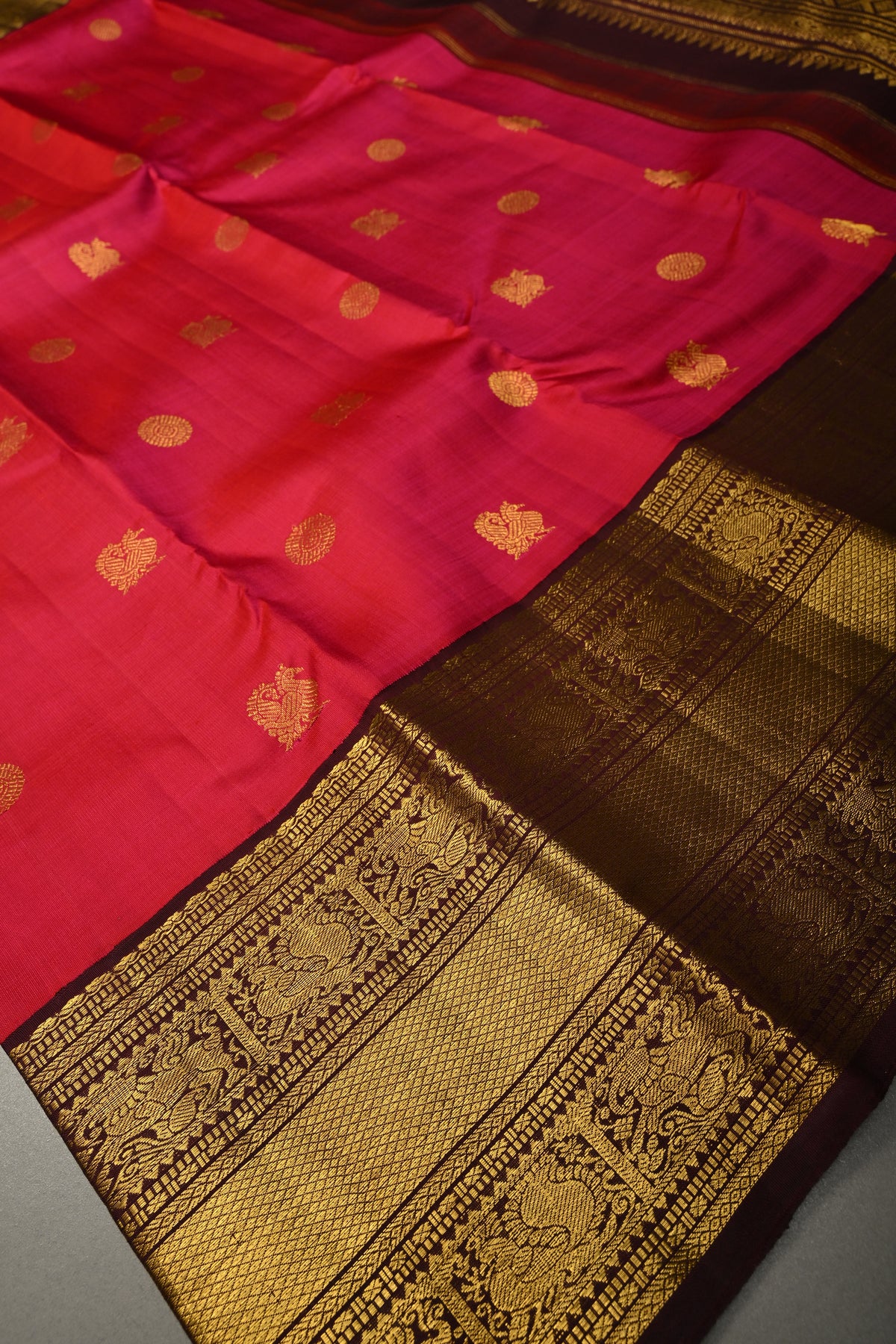 Rani Pink Dual Tone Korvai Pure Kanjivaram Silk Saree with Zari Buttas and Contrast Zari Border | SILK MARK CERTIFIED