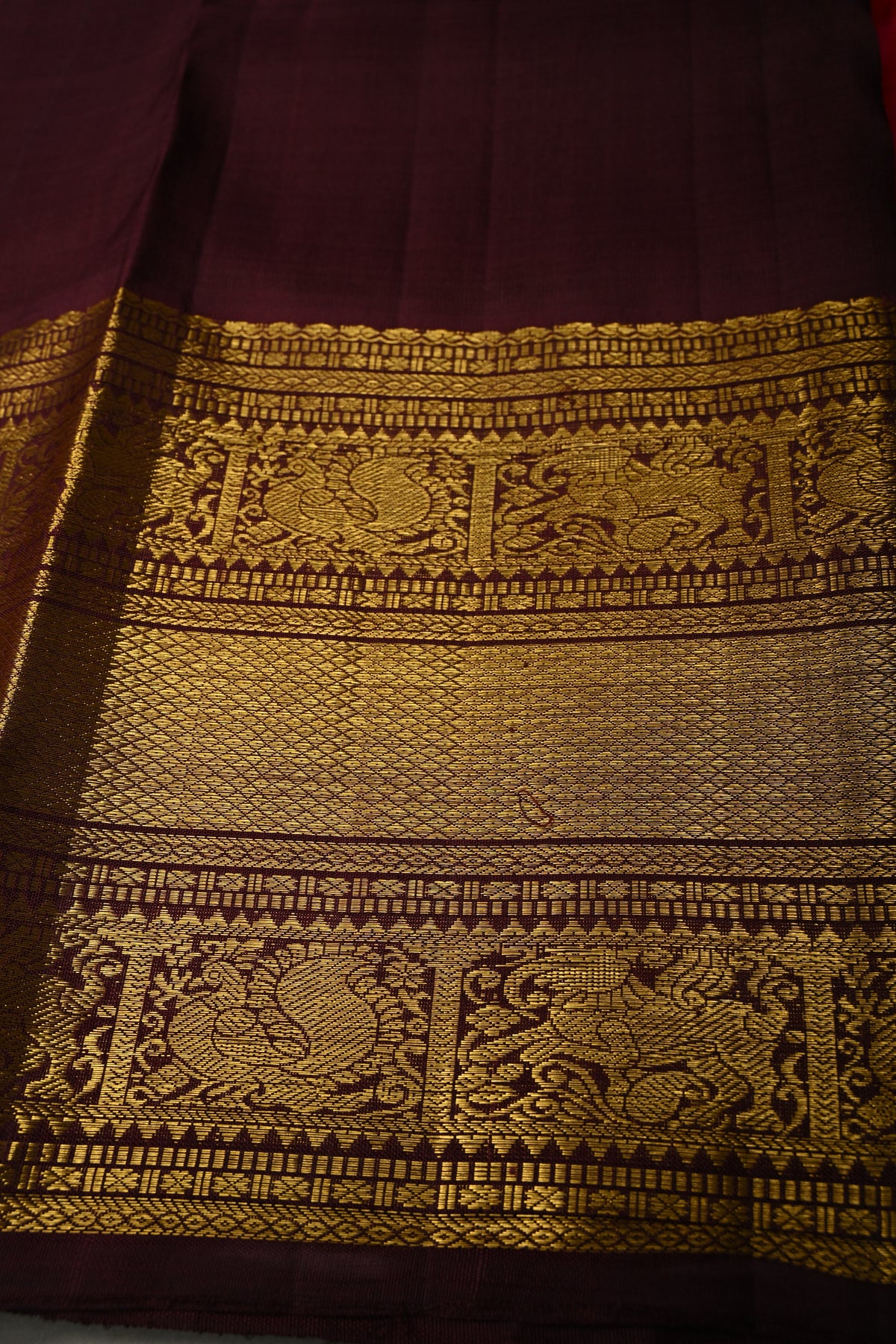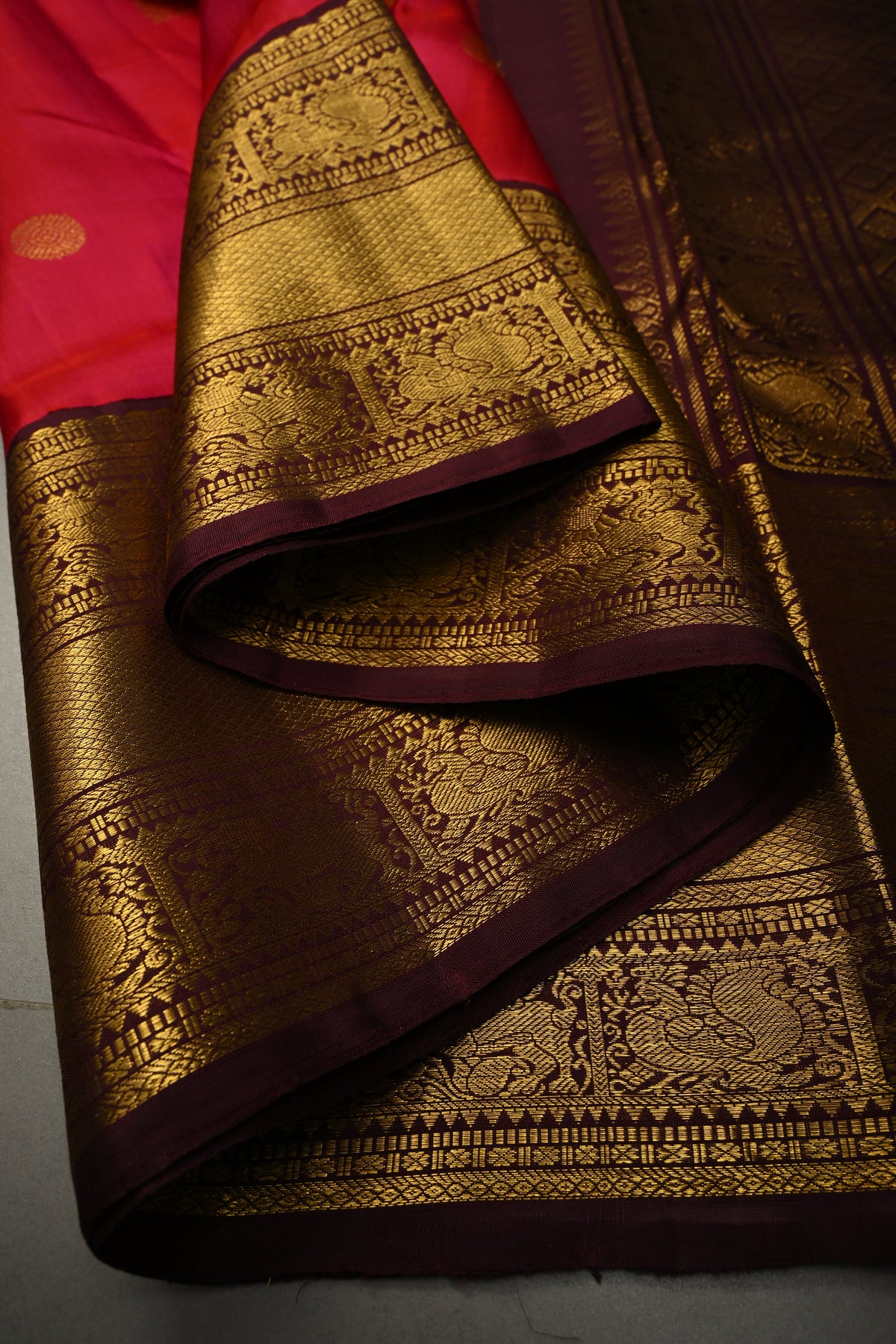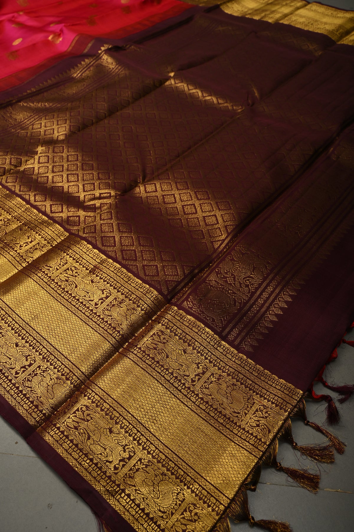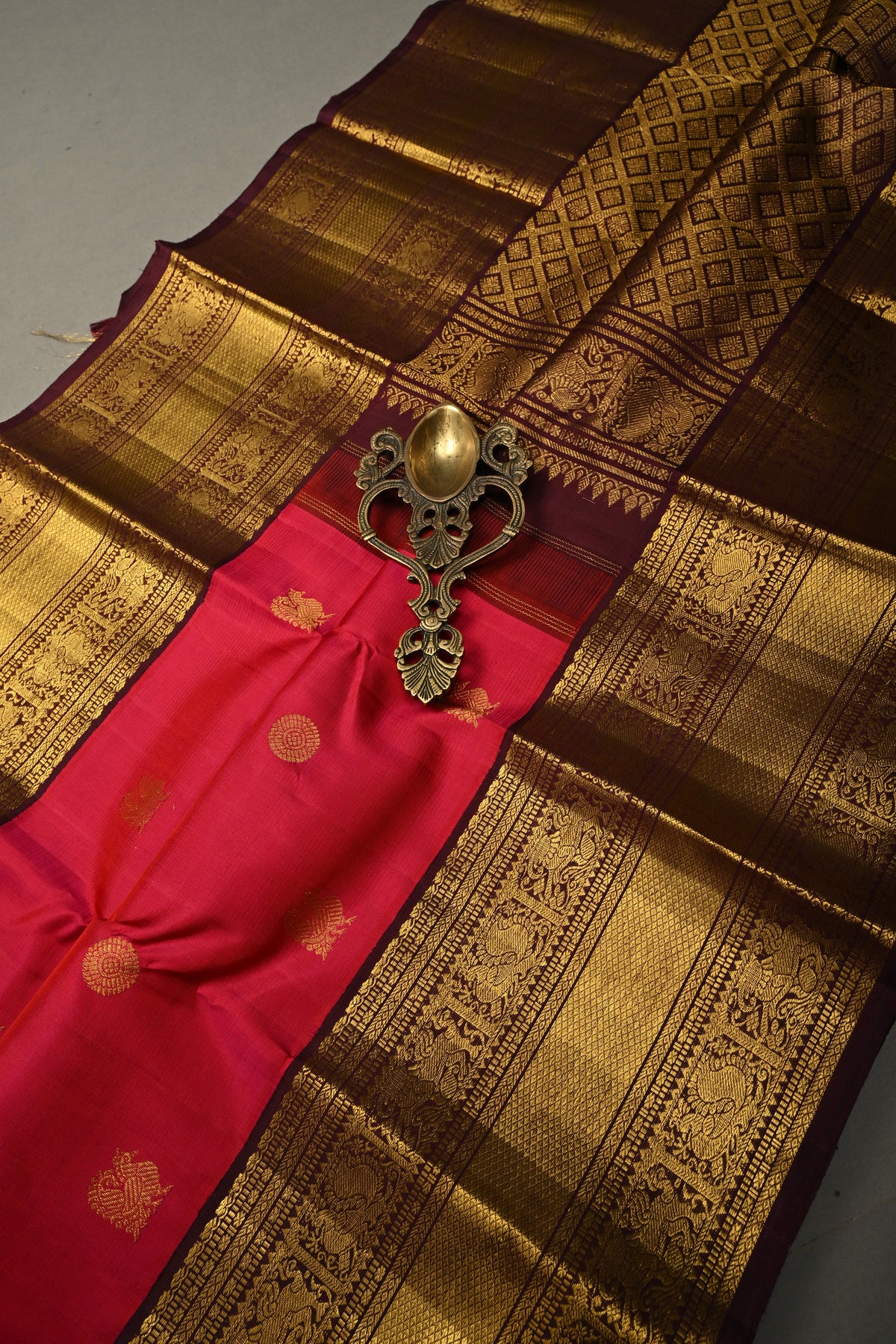 Rani Pink Dual Tone Korvai Pure Kanjivaram Silk Saree with Zari Buttas and Contrast Zari Border | SILK MARK CERTIFIED