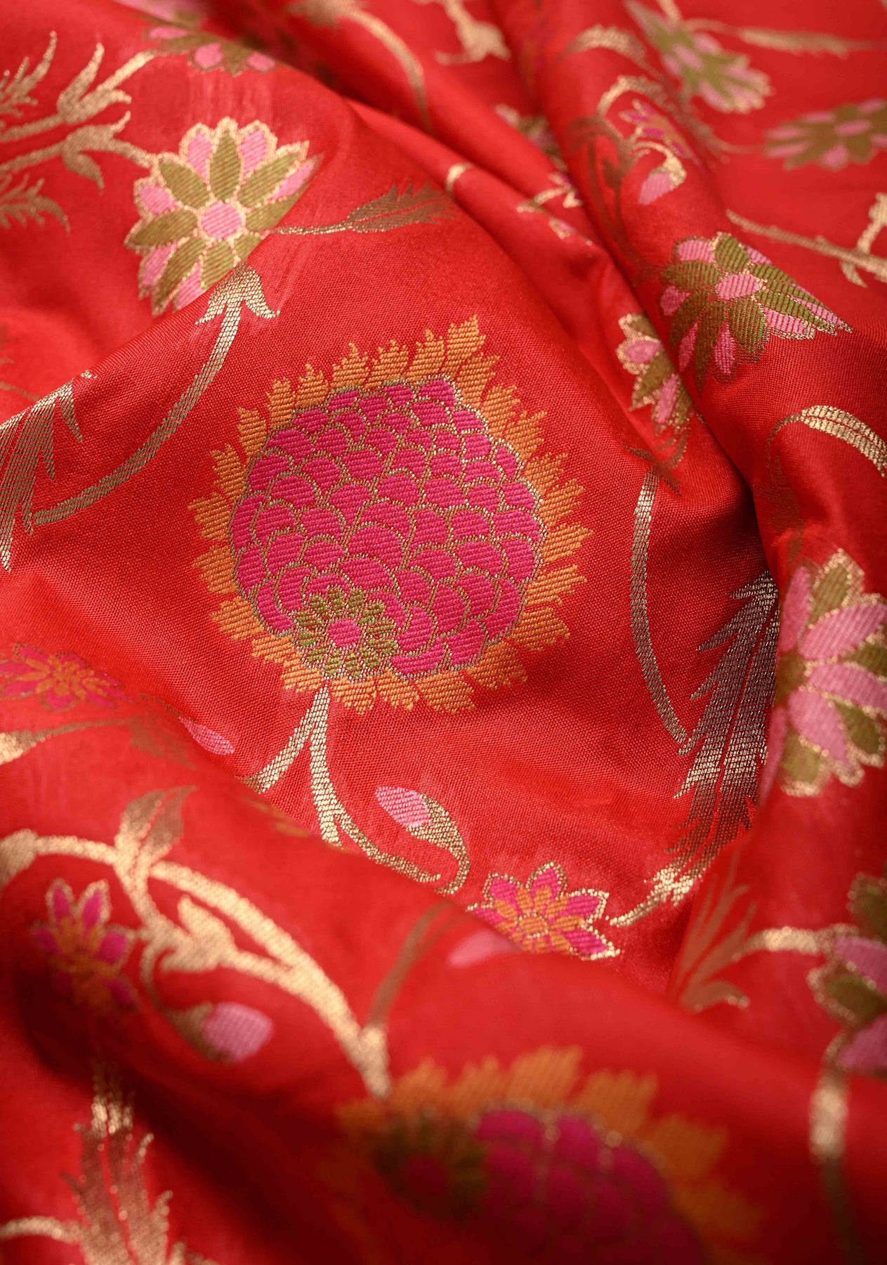 Red Semi Silk Saree with Meenakari Floral Jaal and Zari Border