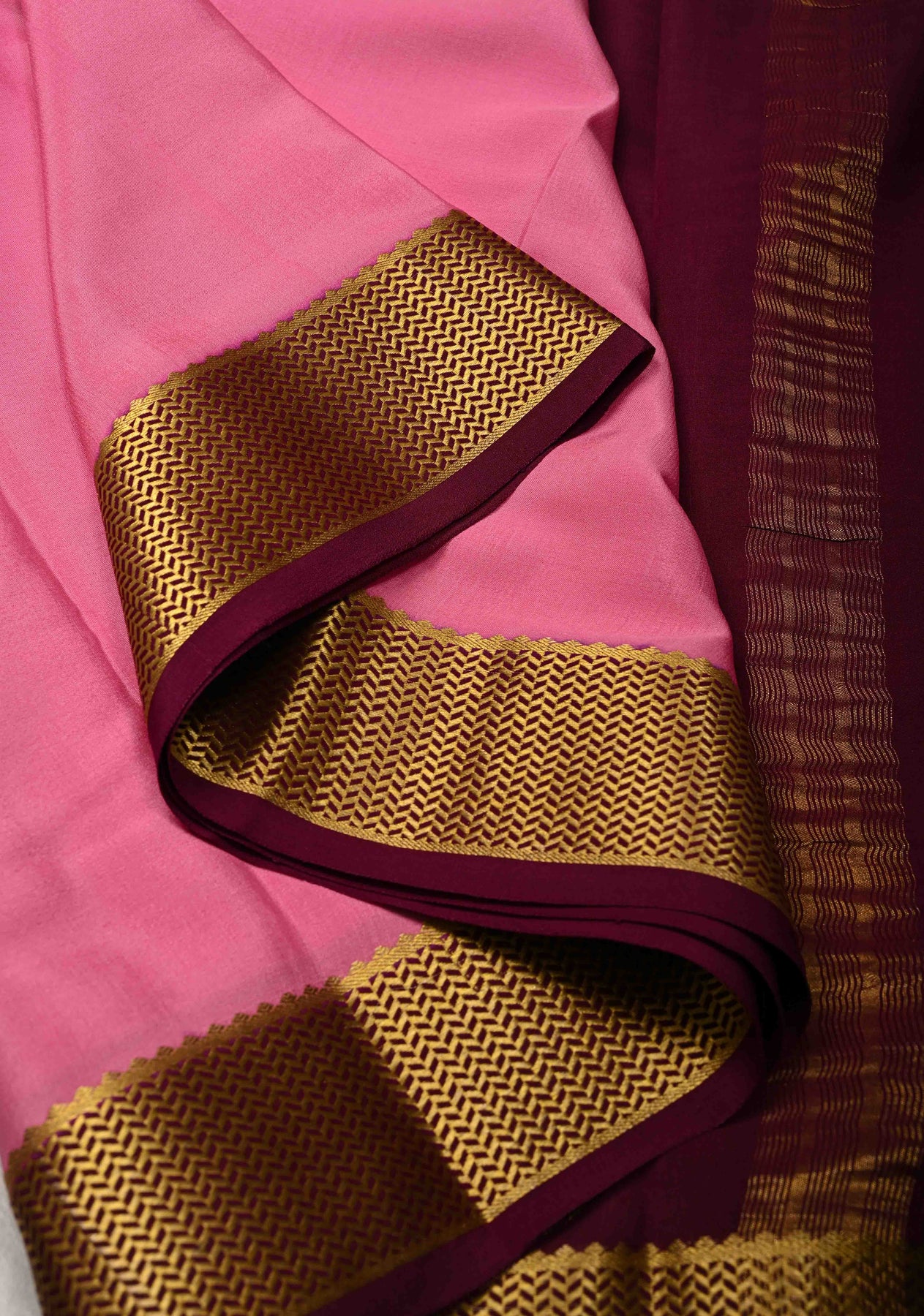 RoseMilk Mysore Silk Saree with Contrast Zari Borders in KSIC Grade Thickness | SILK MARK CERTIFIED