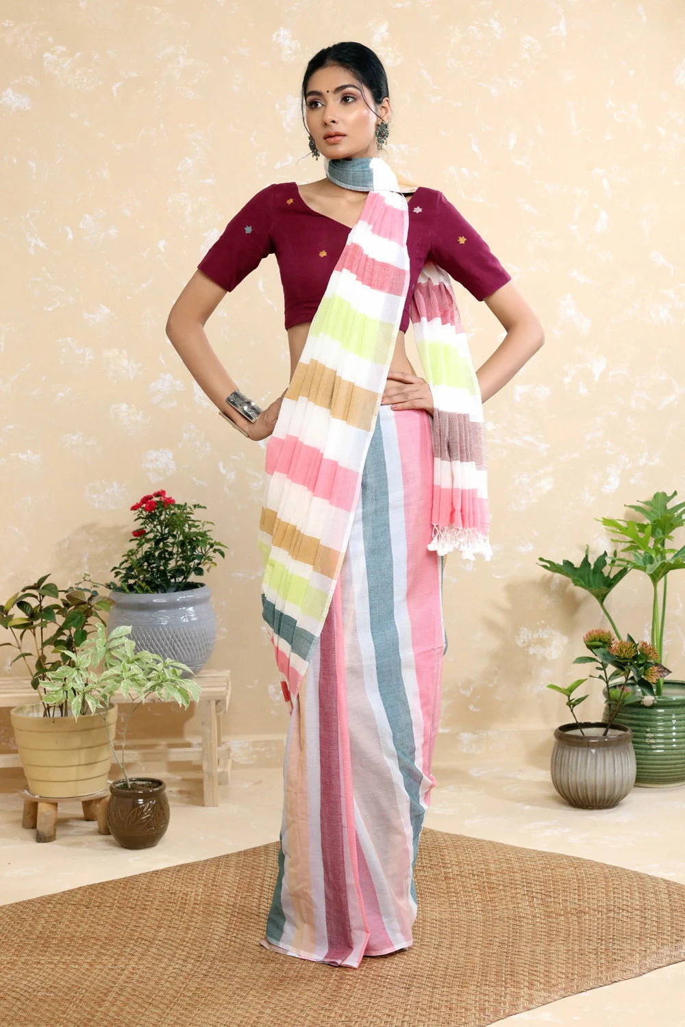 Experience timeless elegance with our Maroon Handloom Cotton Jamdani Blouse, adorned with intricate Grey motifs. This blouse features a front zip closure, half sleeves, a sophisticated V-neck, and comfortable lining. Perfect for both casual and formal occasions, it seamlessly blends traditional craftsmanship with contemporary style, adding a touch of artisanal charm to your wardrobe.