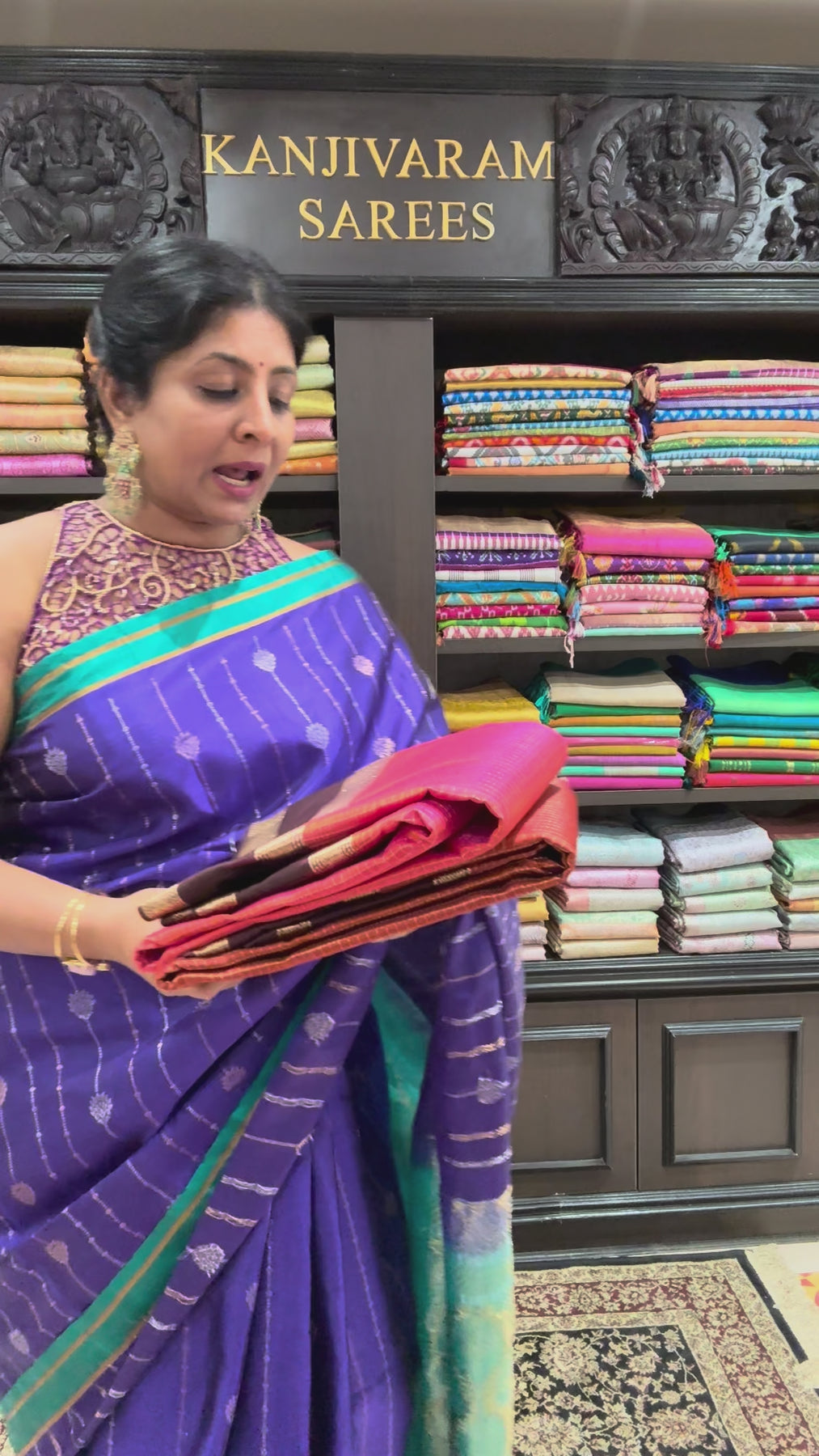 The warm rust orange body is highlighted by finely detailed podi-kattam zari checks, creating a subtle shimmer and structured appeal. Complementing the body is a contrasting Coffee Brown Rettiapet zari border, intricately crafted to add depth, grandeur, and a timeless finish. This saree is a perfect choice for weddings, traditional rituals, and festive celebrations.