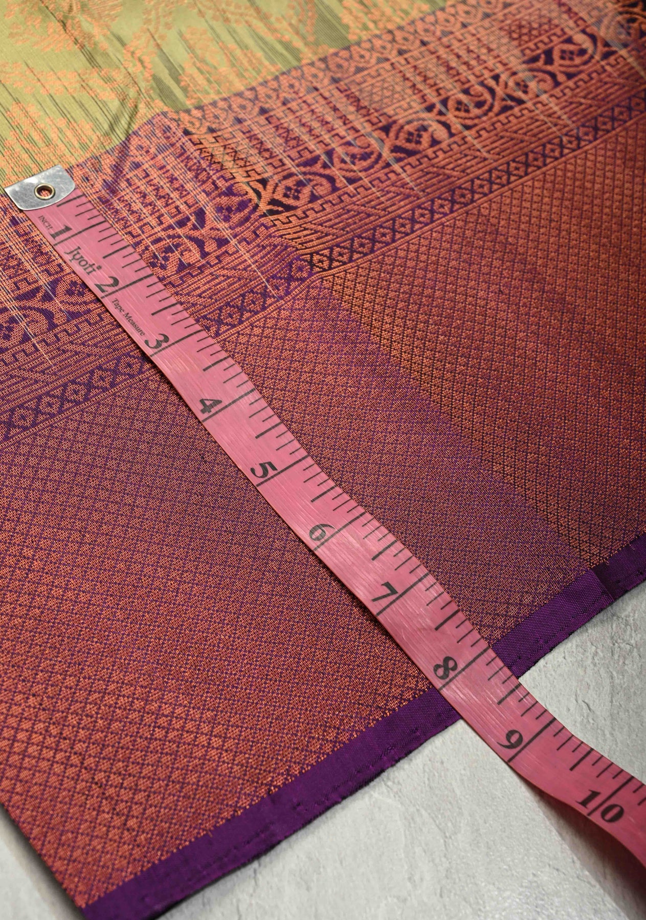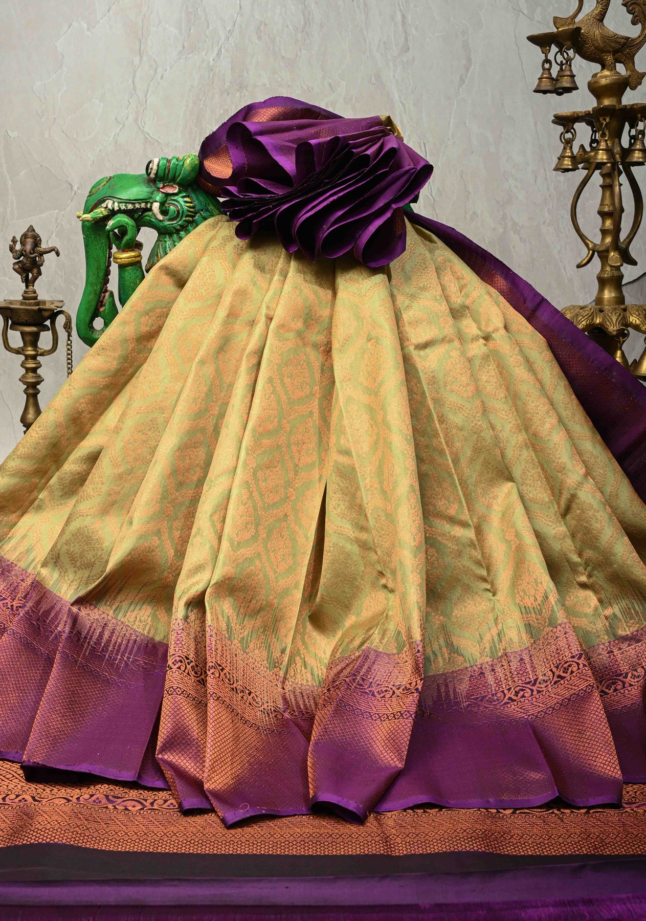 Sage Green Kanjivaram Soft Silk Saree with Brocade Jaal and Contrast Muted Zari Border | SILK MARK CERTIFIED