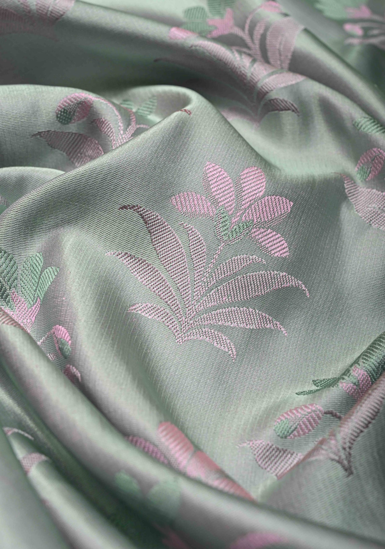 This Sage Green Tanchoi Banarasi Saree in Pure Silk Satin beautifully blends subtle sophistication with intricate artistry. The saree features a soft, elegant sage green base crafted from smooth silk satin, offering a luxurious sheen and graceful drape. Adorned with delicate Meenakari floral brocade work, the intricate patterns add a refined touch of traditional craftsmanship. Complemented by a minimal zari border, the saree strikes the perfect balance between understated elegance and timeless beauty. Ideal for weddings, formal events, and festive occasions, this saree is a true testament to classic Banarasi artistry.