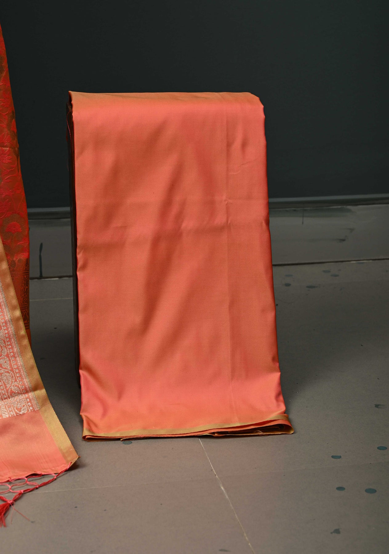 Salmon Orange Floral Jaal  Semi Mashru Silk Unstitched Salwar Suit Set
