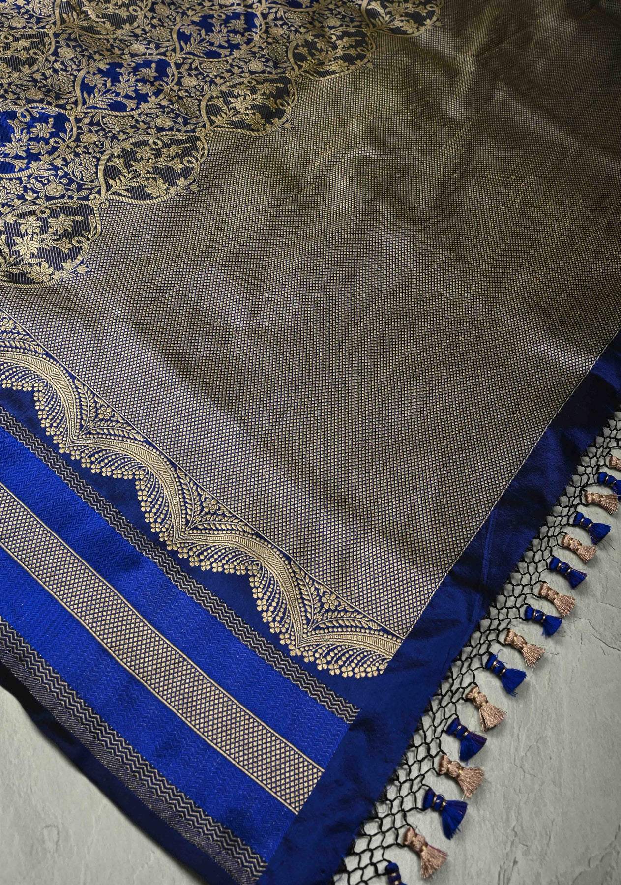 This Shades of Blue Rangkaat Style Banarasi Katan Silk Saree is a stunning blend of serenity and traditional artistry. Woven in the classic Rangkaat style, the saree features a beautiful interplay of blue tones that create a soothing yet striking visual appeal. Crafted from Katan silk, it offers a rich sheen and graceful drape. The intricate Persian floral brocade adds an element of timeless elegance, while the finely detailed zari border enhances its regal charm. Perfect for weddings, festive occasions, and special celebrations, this saree is a captivating fusion of color, tradition, and sophistication.