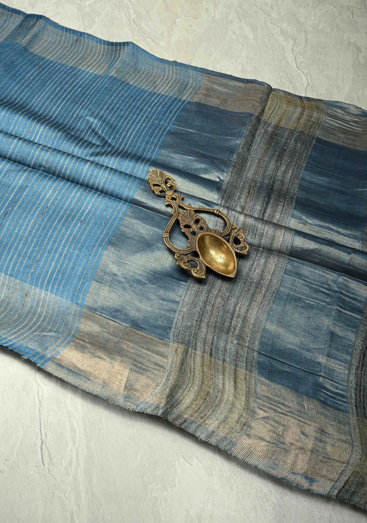 Experience refined elegance with this Slate Blue Handloom Tussar Silk Saree, beautifully woven to showcase the natural texture and sheen of pure tussar silk. The calm and sophisticated slate blue shade adds a contemporary charm, making it perfect for festive gatherings, cultural events, or elegant daytime occasions. The muted zari border lends a touch of understated luxury, while the artistic panel pallu enhances the saree’s traditional appeal. Lightweight and gracefully draping, this saree blends classic craftsmanship with modern style.