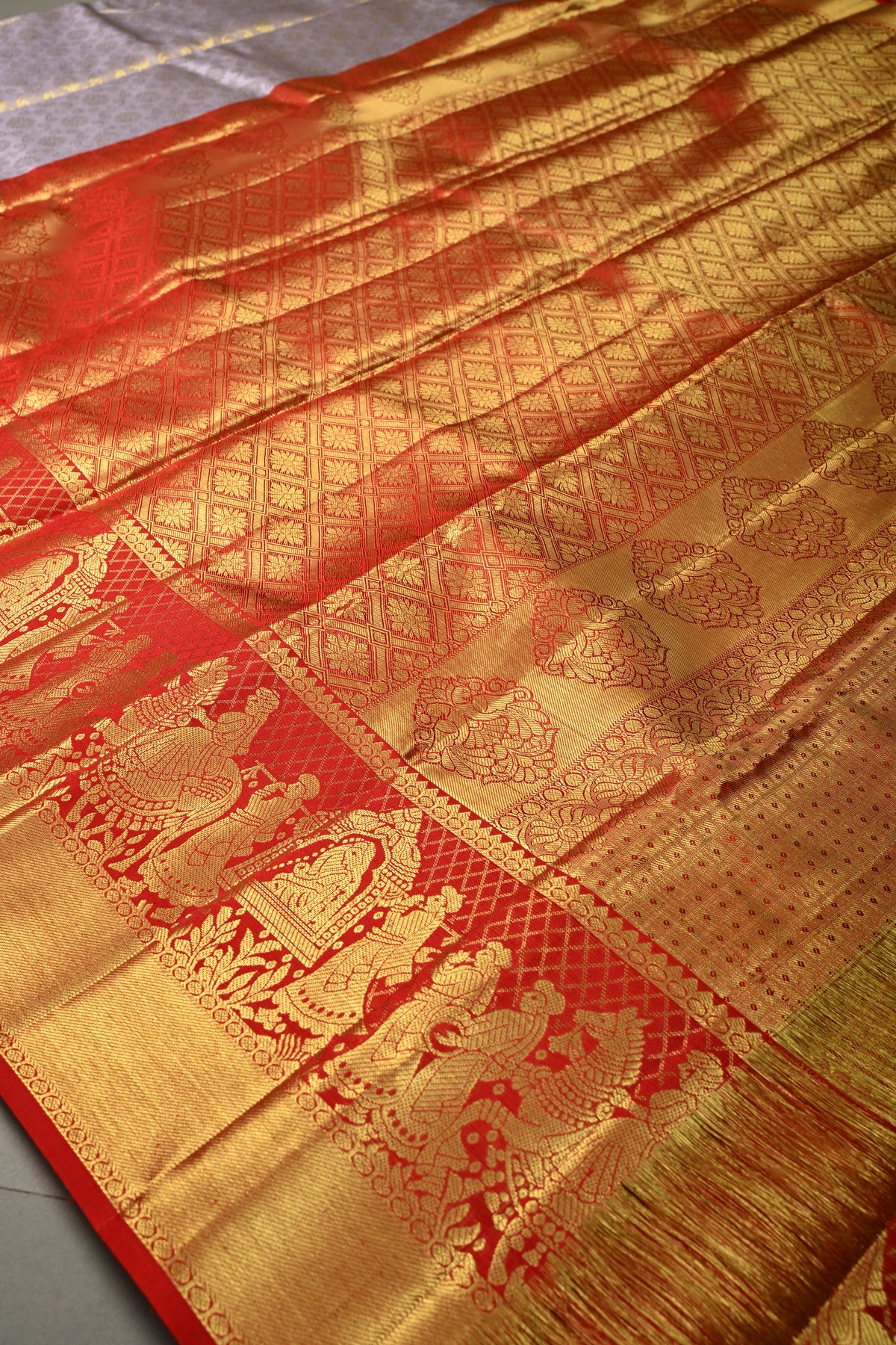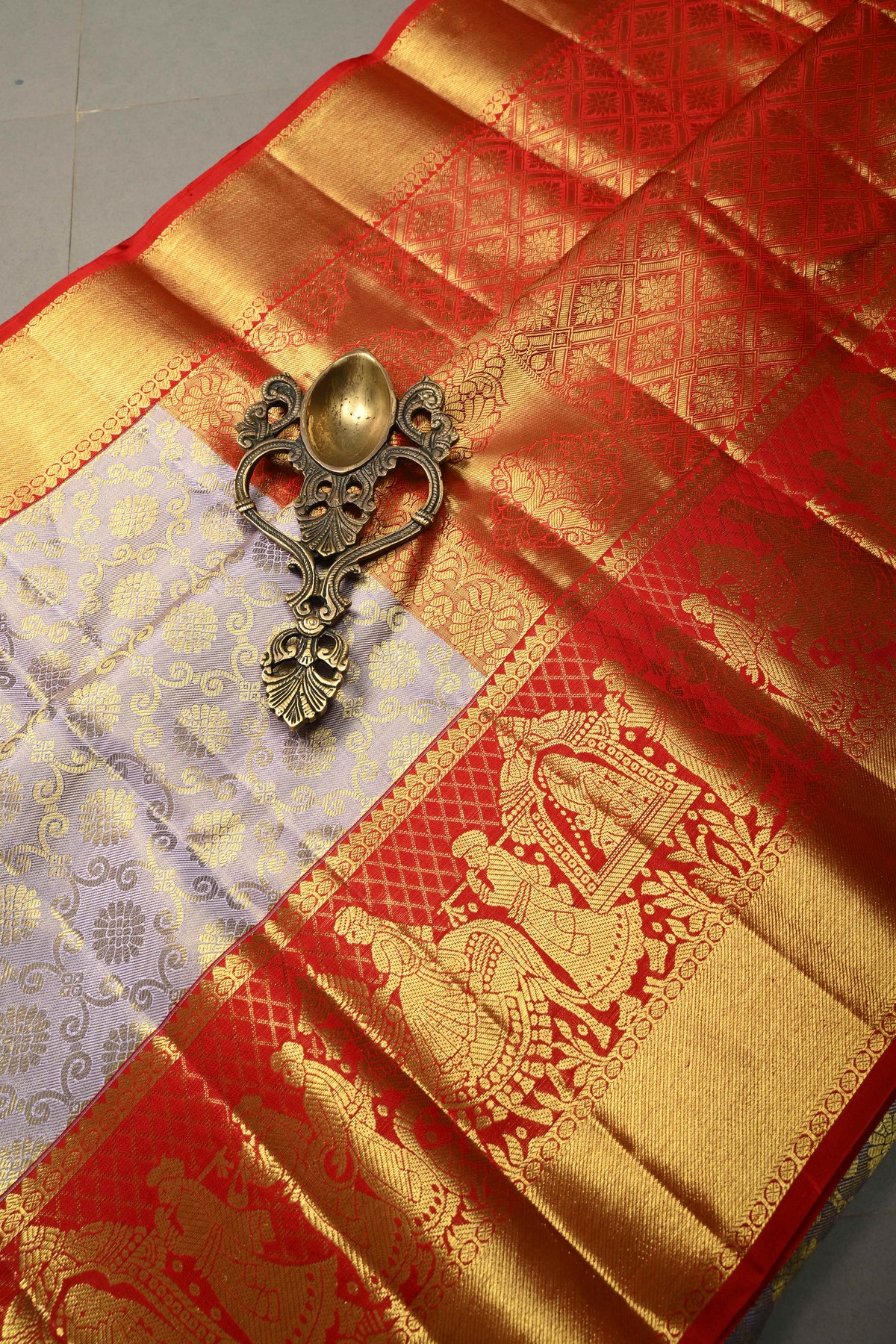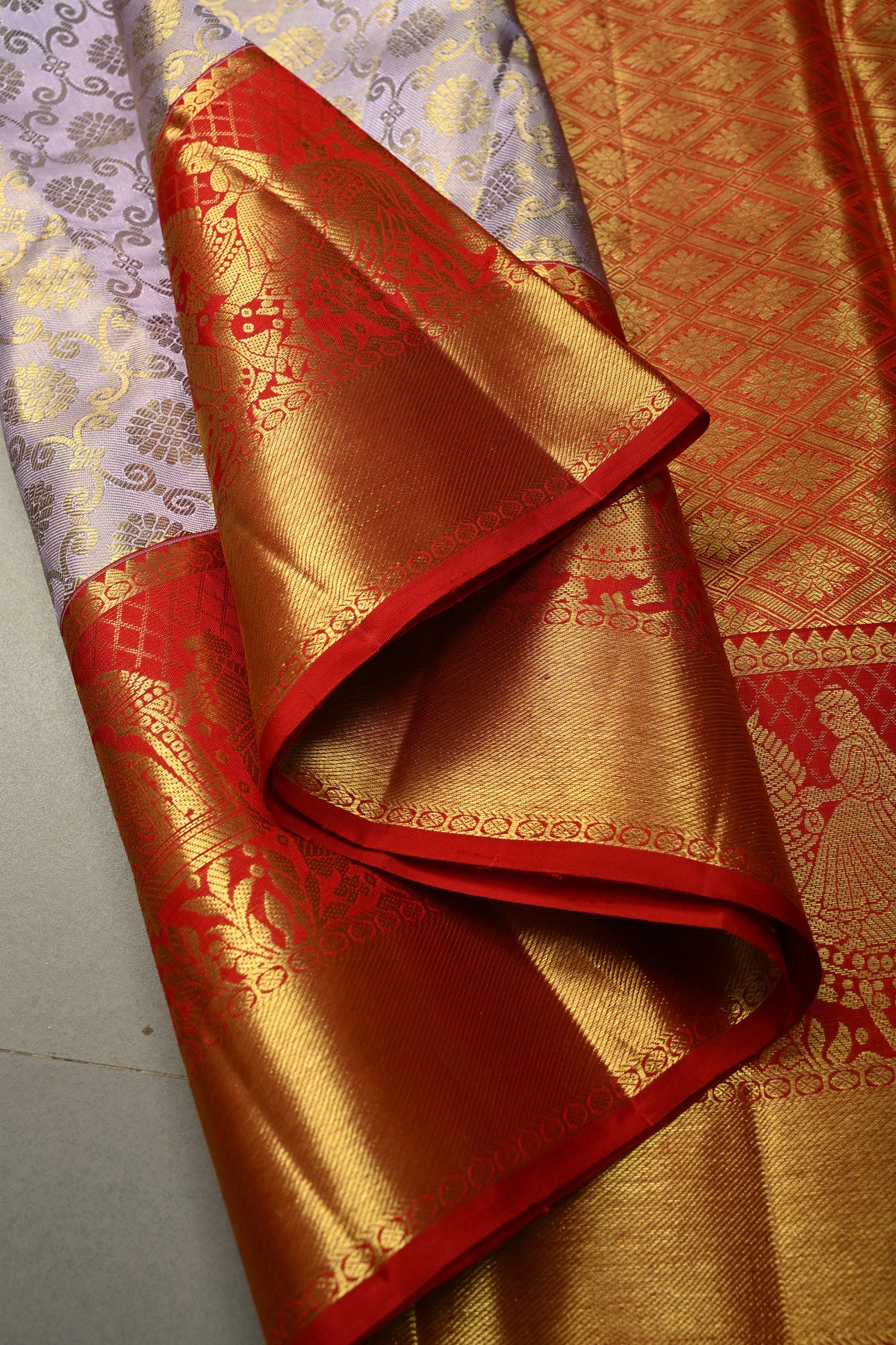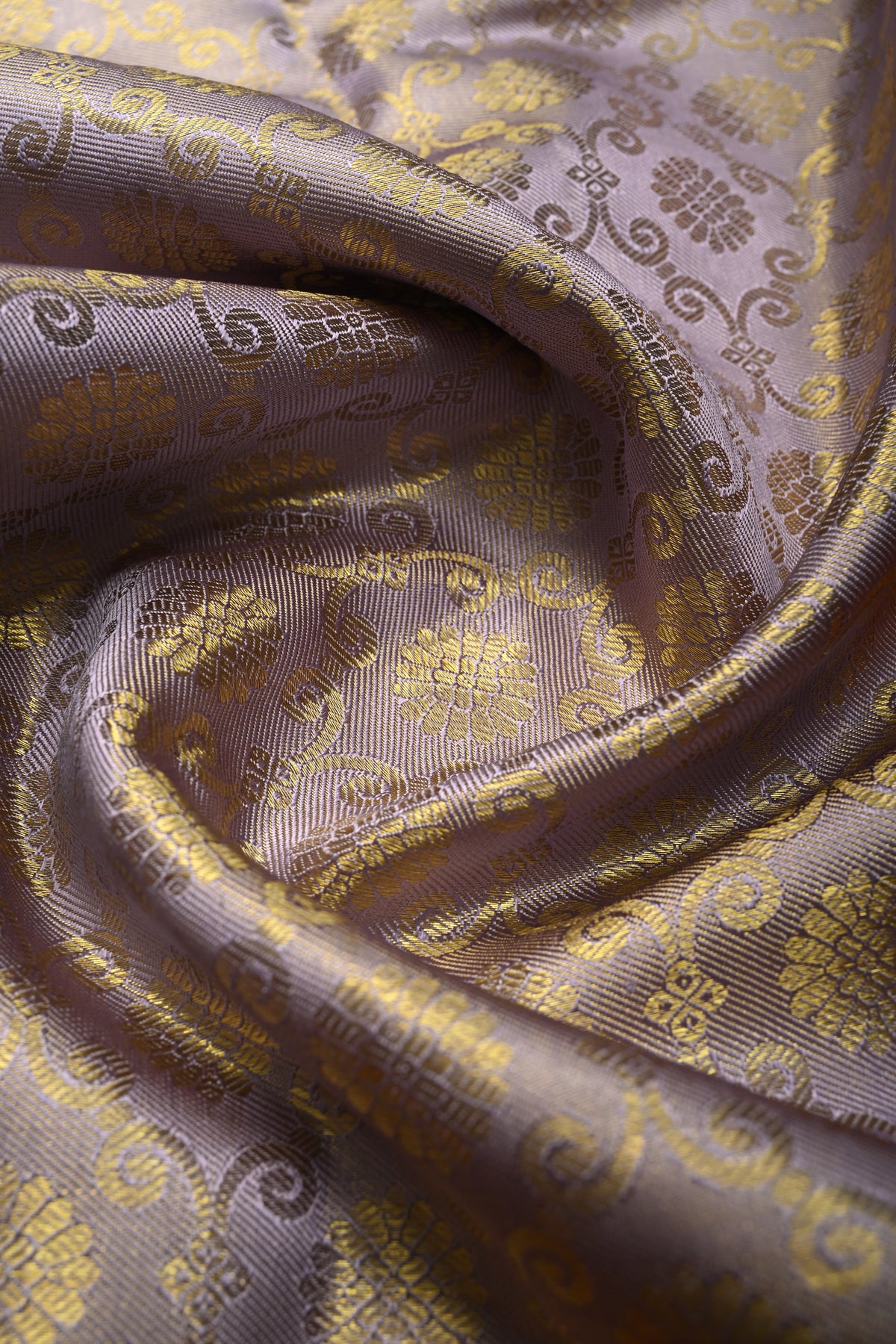 Talambralu Lilac-Gold Pure Kanjivaram Tissue Silk Saree with Brocade Jaal and Contrast Doli-Baraat Zari Border | SILK MARK CERTIFIED