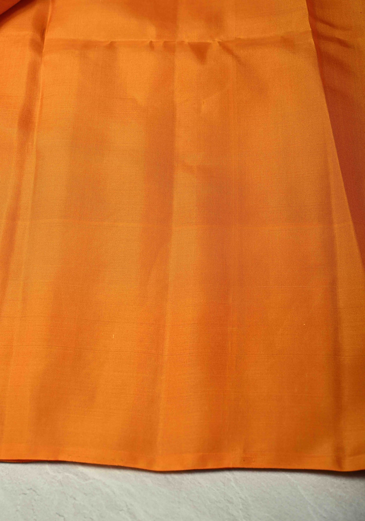 Red Kanjivaram Soft Silk Saree with Resham Butta and Contrast Orange Border | SILK MARK CERTIFIED