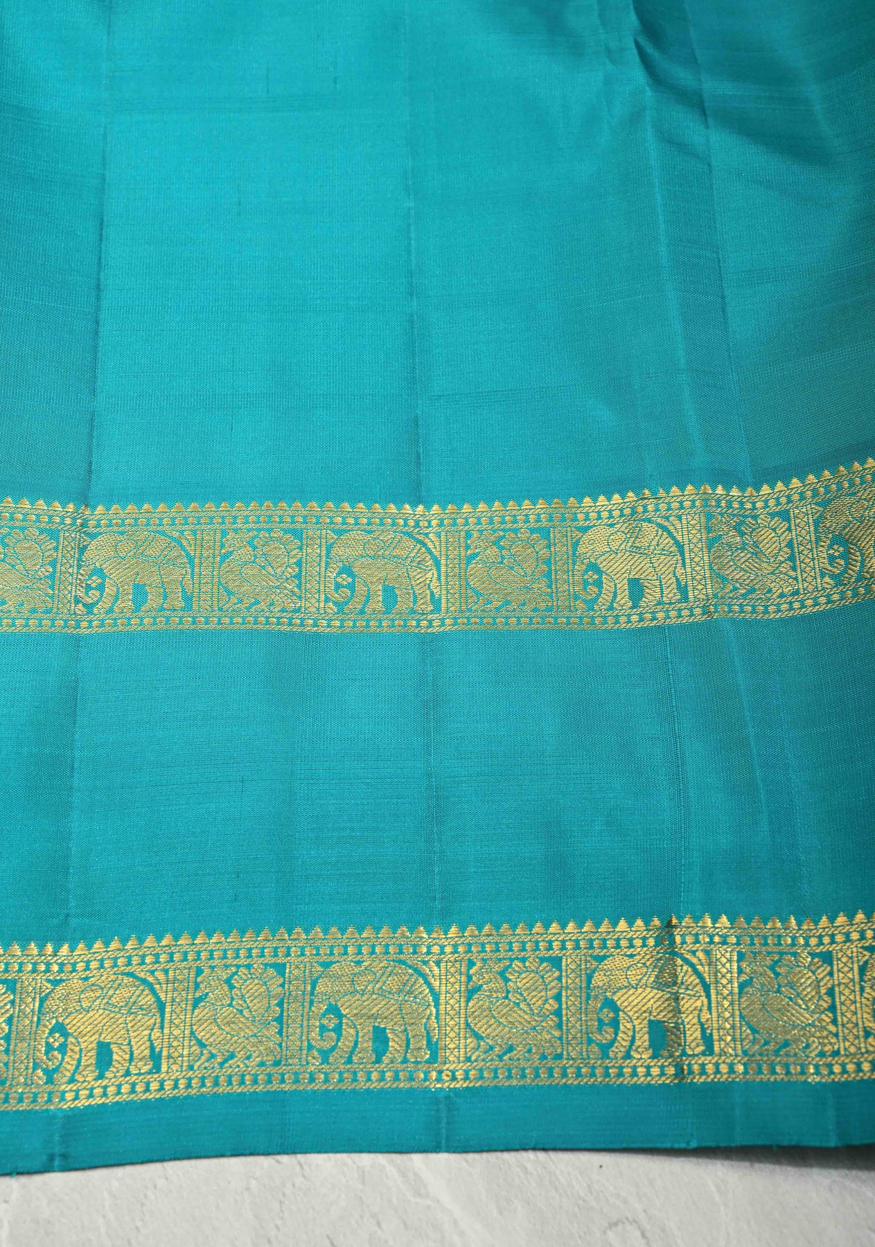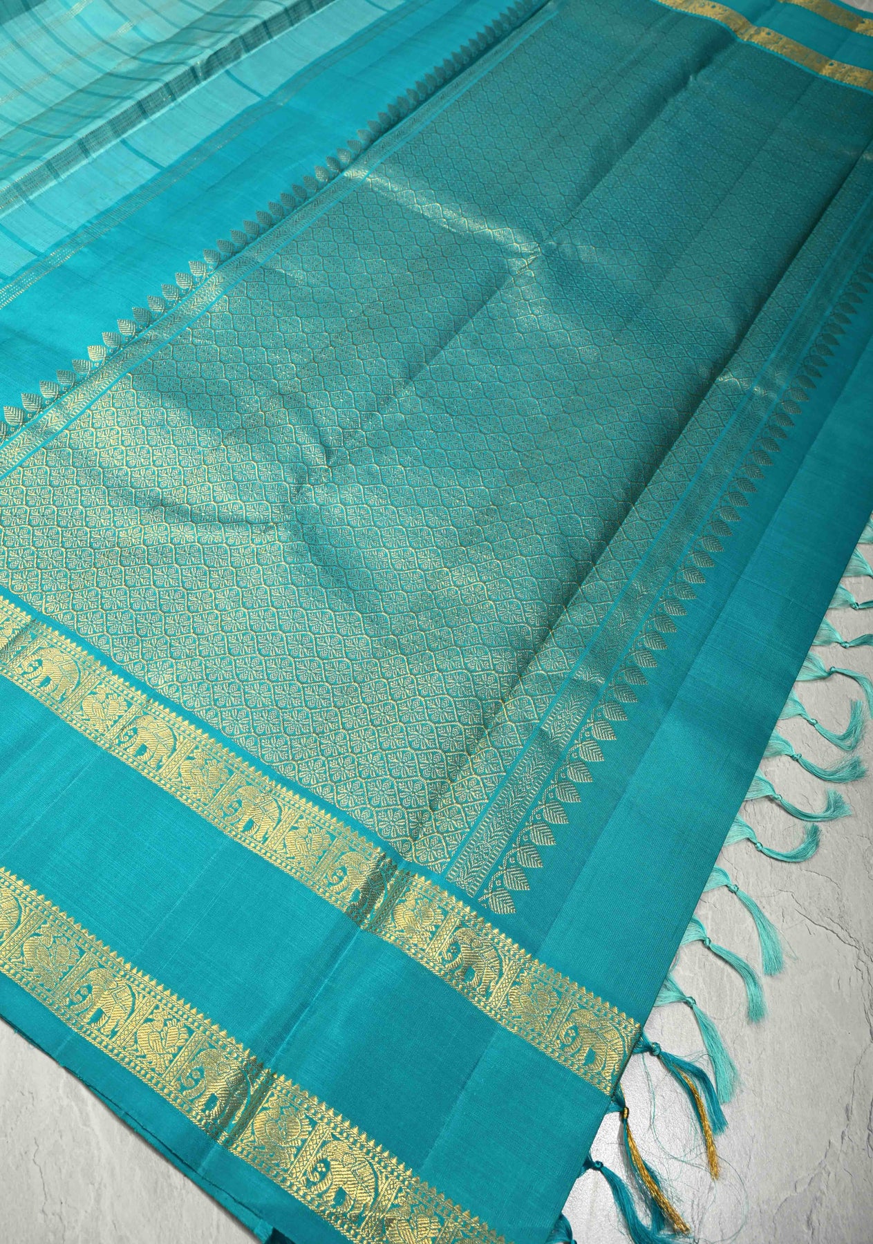 Turquoise  Kanjivaram Pure Silk Saree with Zari Checks and Rettaipet Zari Border | SILK MARK CERTIFIED