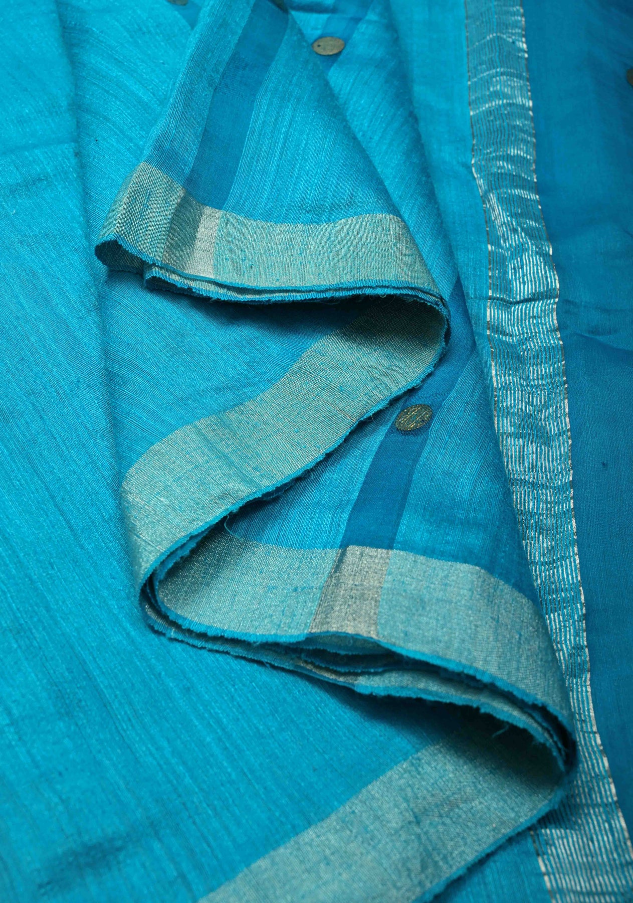 Embrace refined elegance with this exquisite Turquoise Matka Muslin Silk Saree, a perfect blend of tradition and modern sophistication. Handwoven from premium Matka and Muslin silk, it features a beautifully textured weave that combines the rich depth of Matka silk with the fluid grace of Muslin.