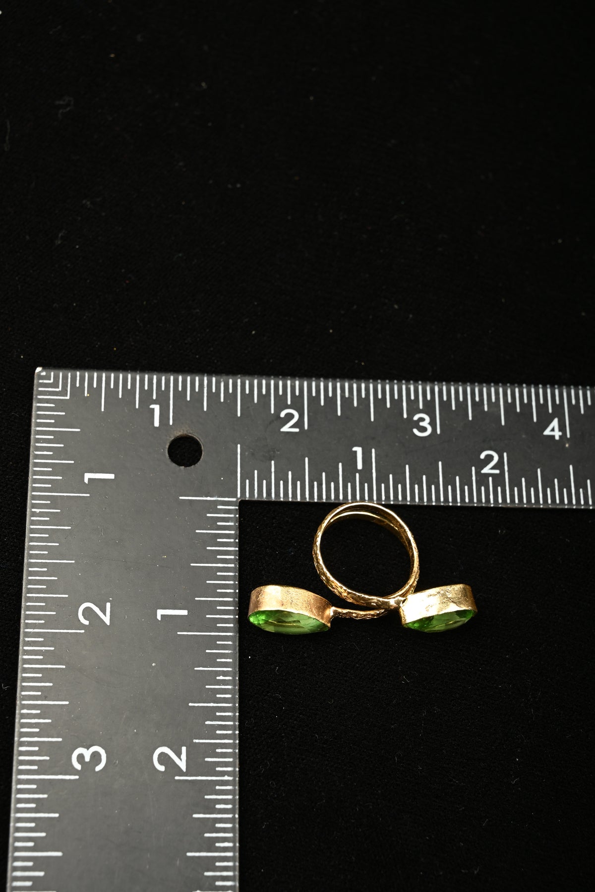 Vibrant Green Fusion-Peridot Double Pear Adjustable Brass Ring