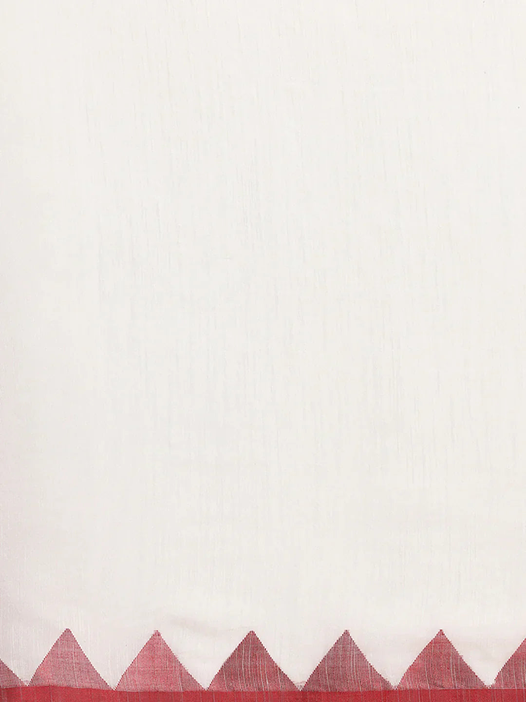 White-Red Silk Cotton Saree with Temple Border and Blouse piece