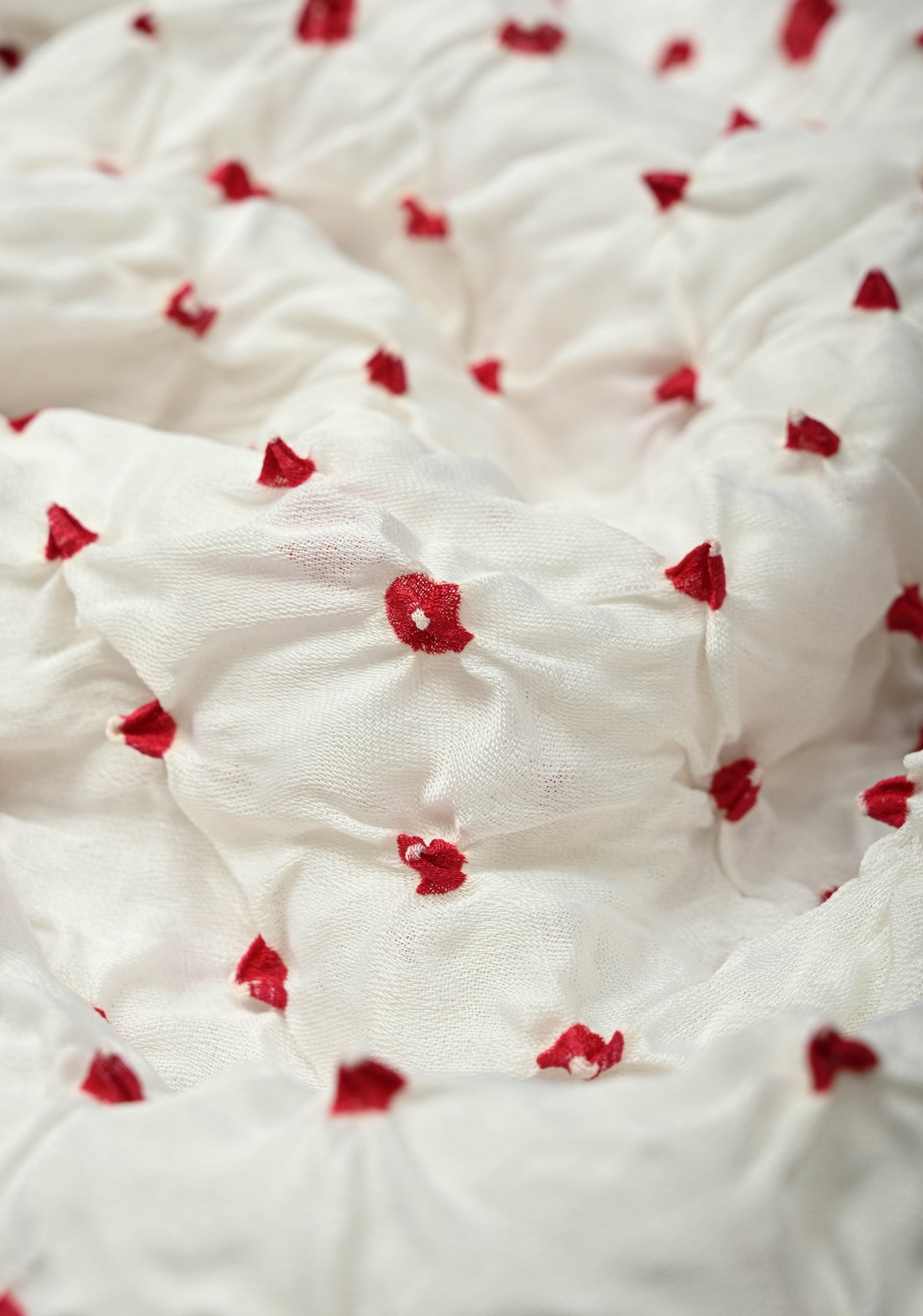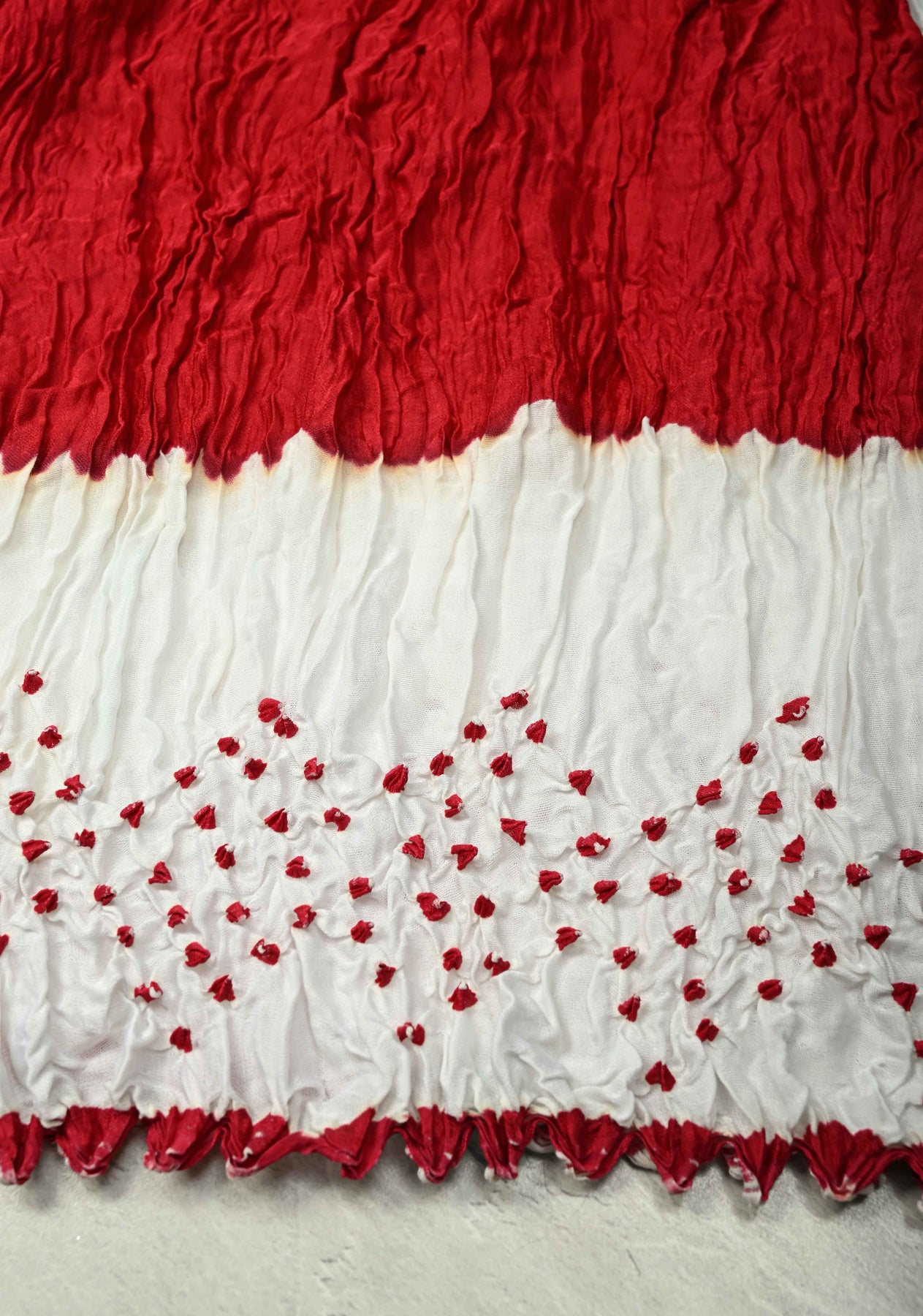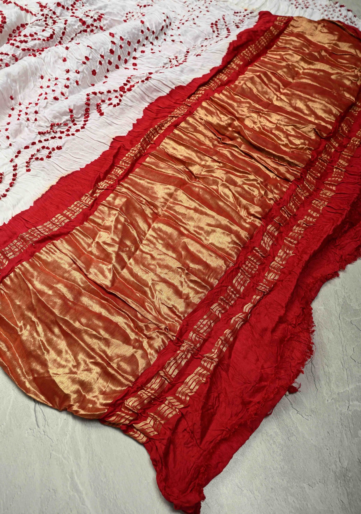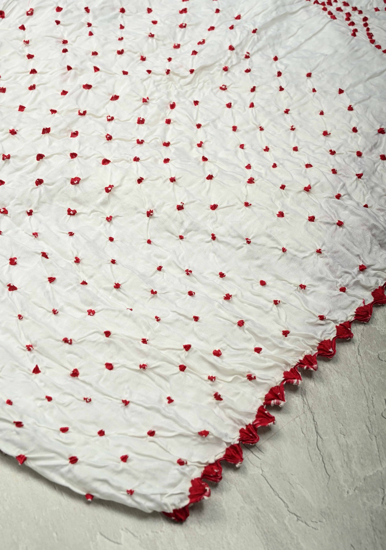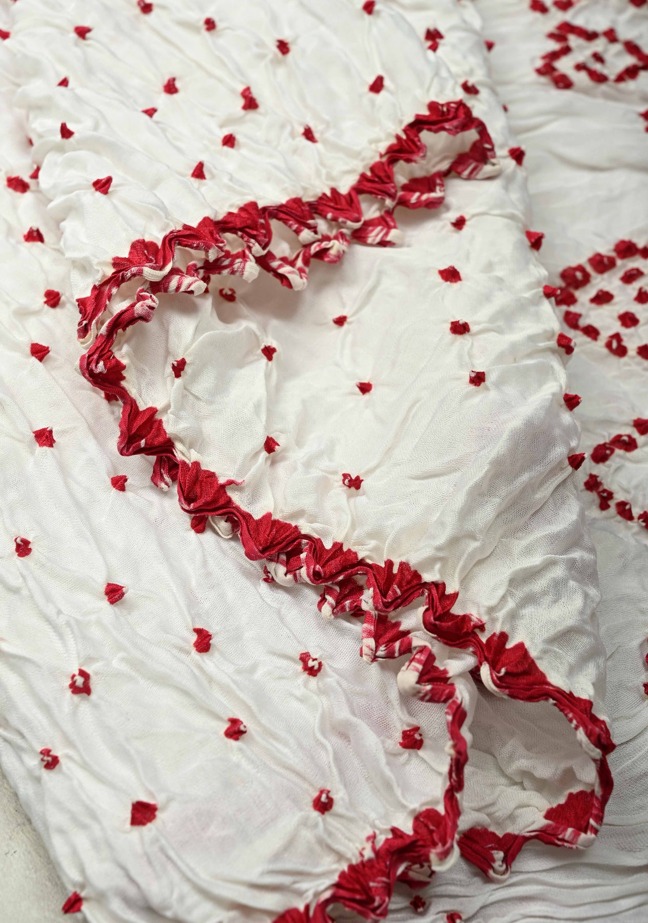 White Sarkam Bandhej on Modal Silk Saree with Kungra Borders and Crushed Pallu