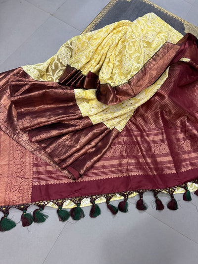 Shop from our exclusive handpicked range of sarees that we have specially designed to add charm and grace to your celebrations! Indulge in the classic weaves of Kanjivaram, Banarsi, Chanderi, Venkatagiri, and other heritage silk sarees.