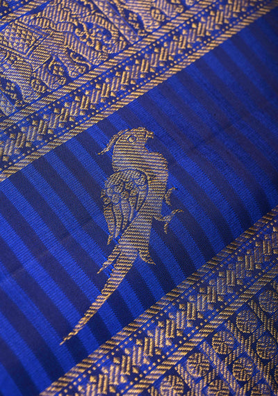Blue Borderless Kanjivaram Pure Silk Saree with Stripes and Zari Buttas | SILK MARK CERTIFIED