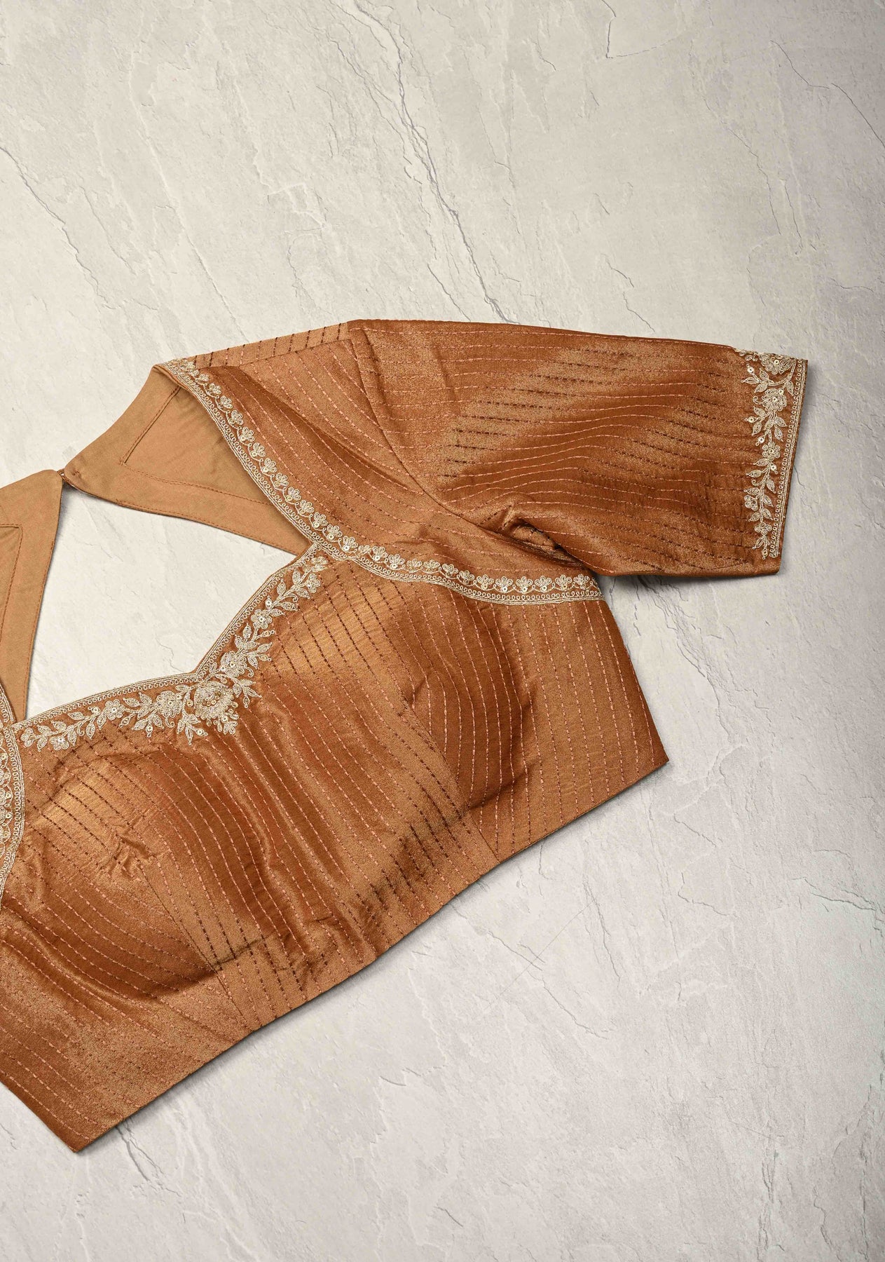 This saree is ready to wear with fall and pico done.  A stitched blouse is included.
