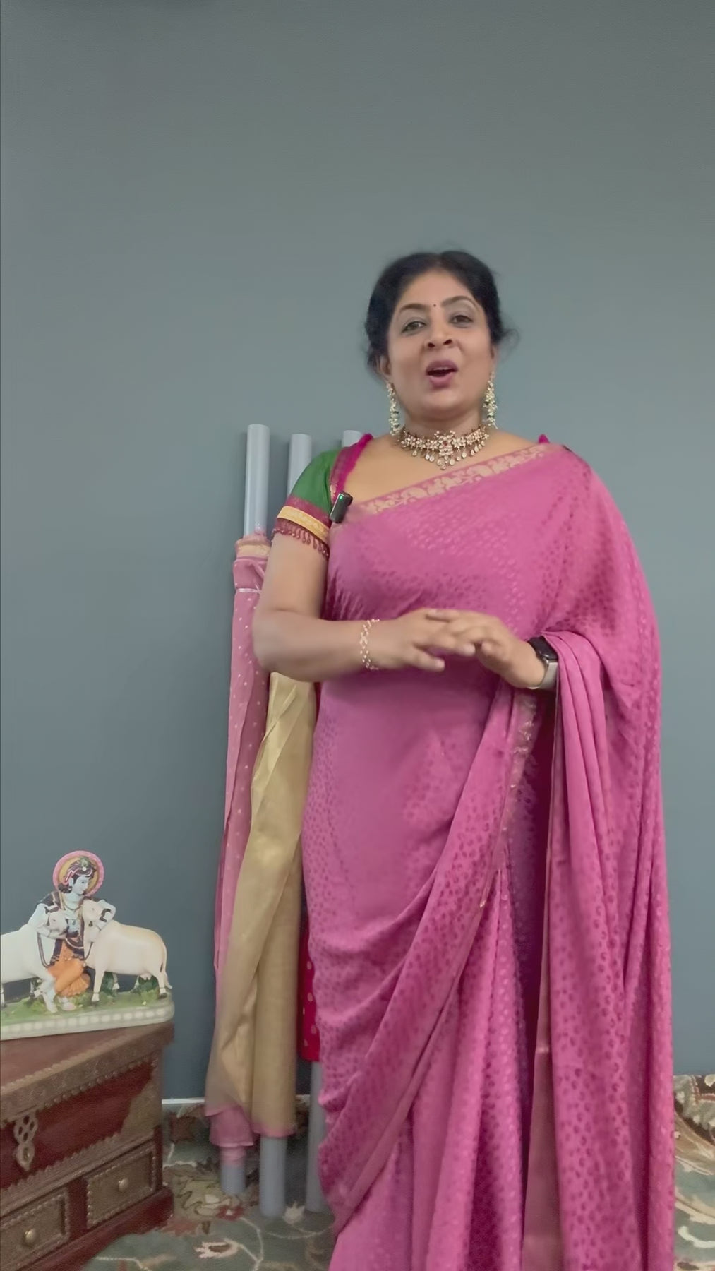 This saree is ready to wear with fall and pico done. An unstitched blouse fabric is included