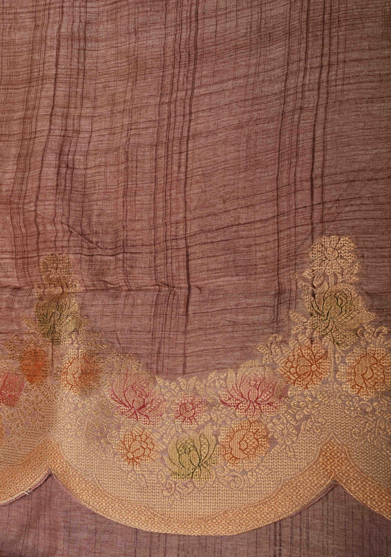 Multicolor Rangkaat Style Brush Dye  on Vegan Viscose Silk Saree with Paisley Buttas and Scallop Border