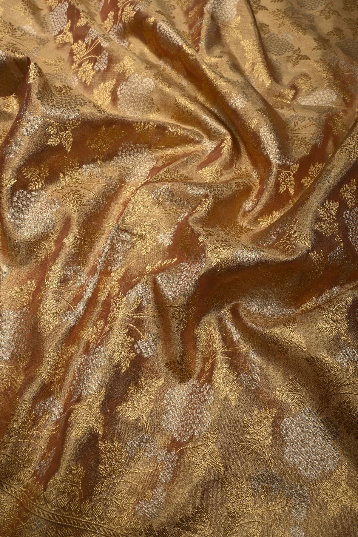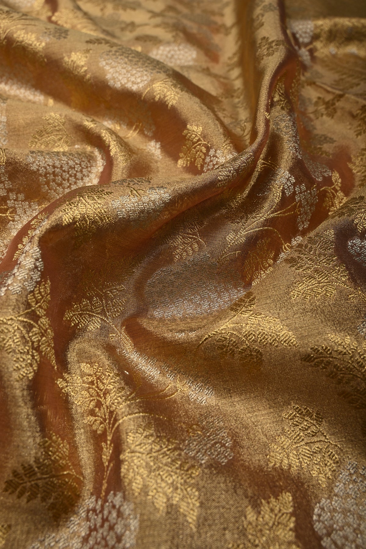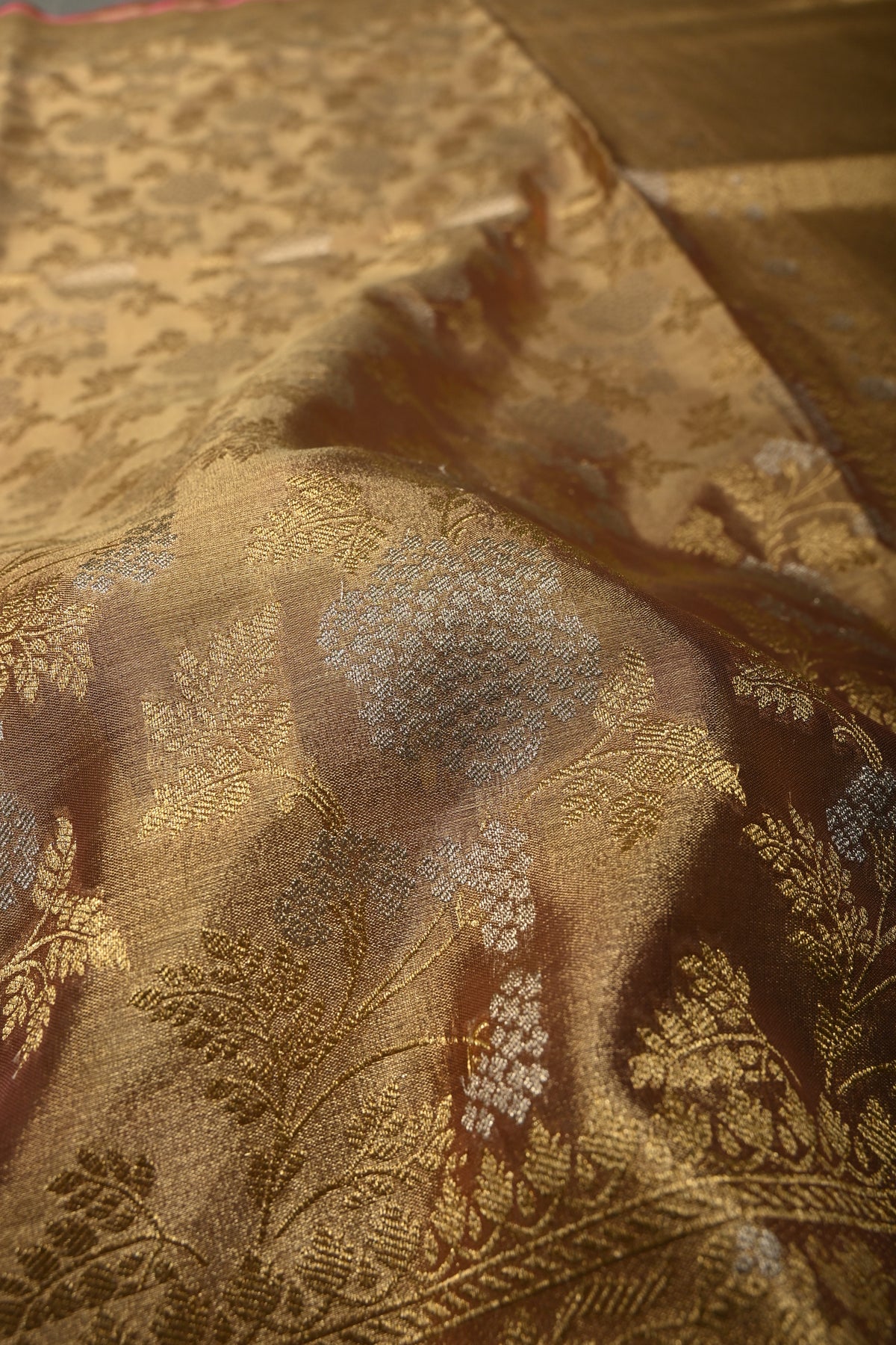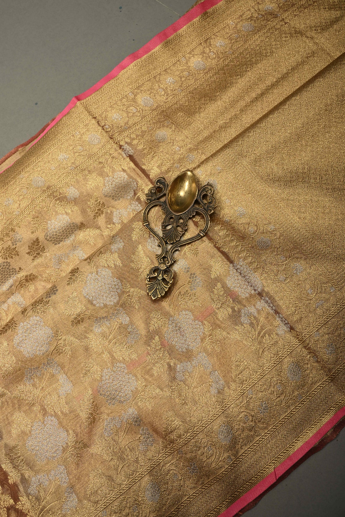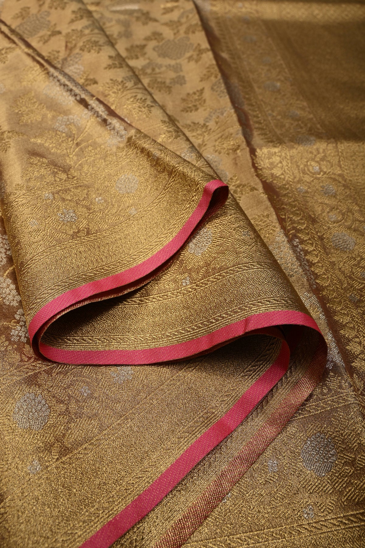 Pink-Gold Banarasi Vegan Silk Tissue Saree with Alfi Floral Jaal Brocade and Border
