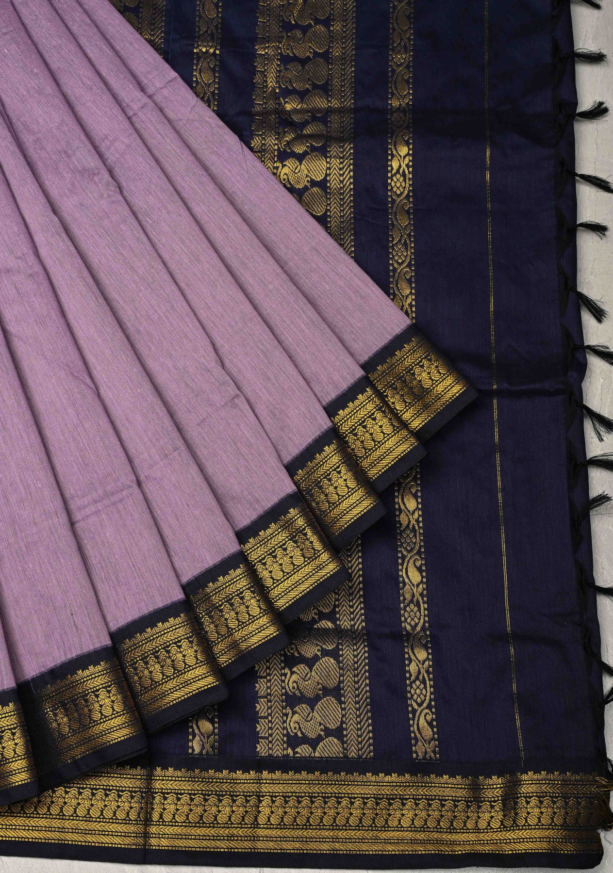 Dusty Amethyst Venkatagiri Cotton Silk Saree with Contrast Zari Border