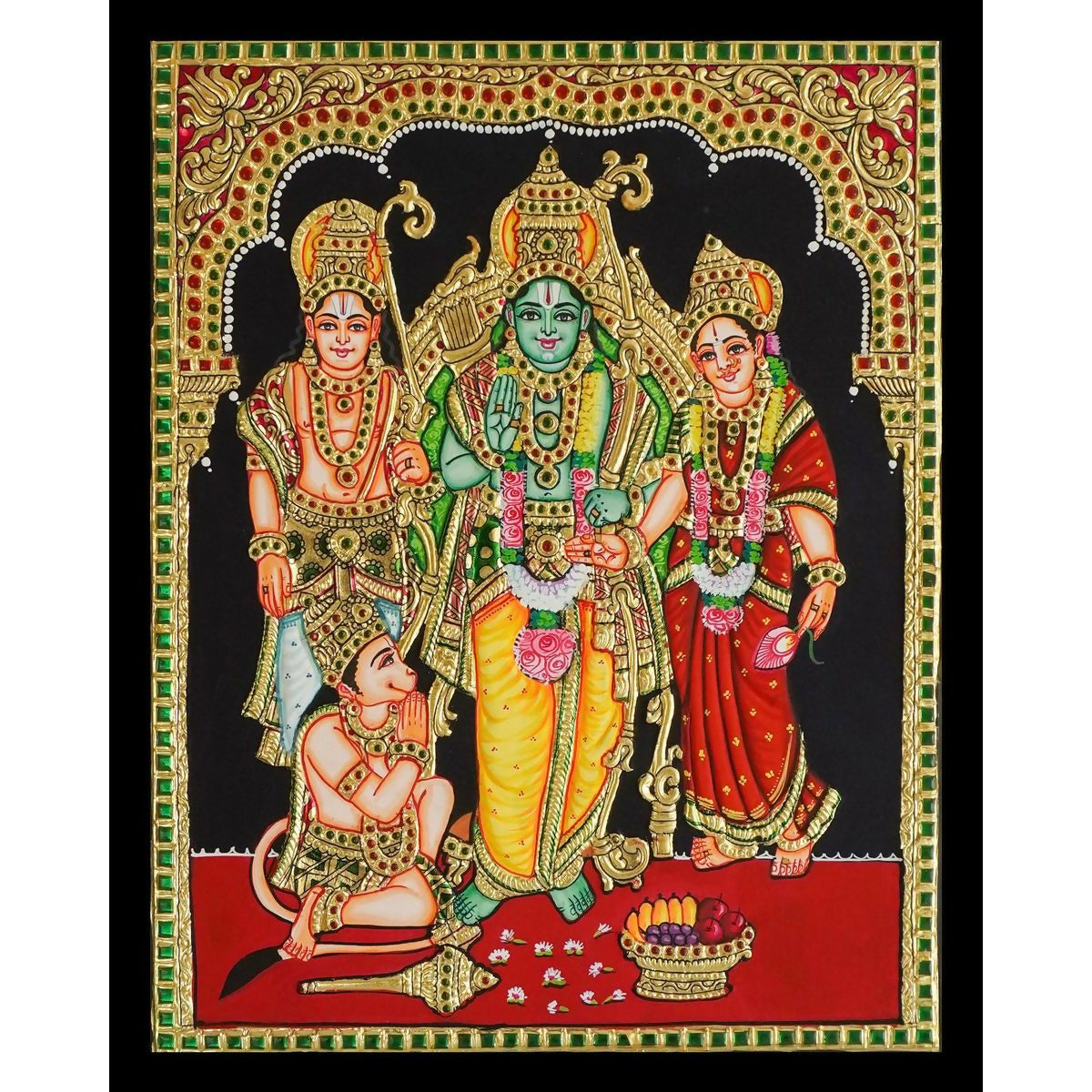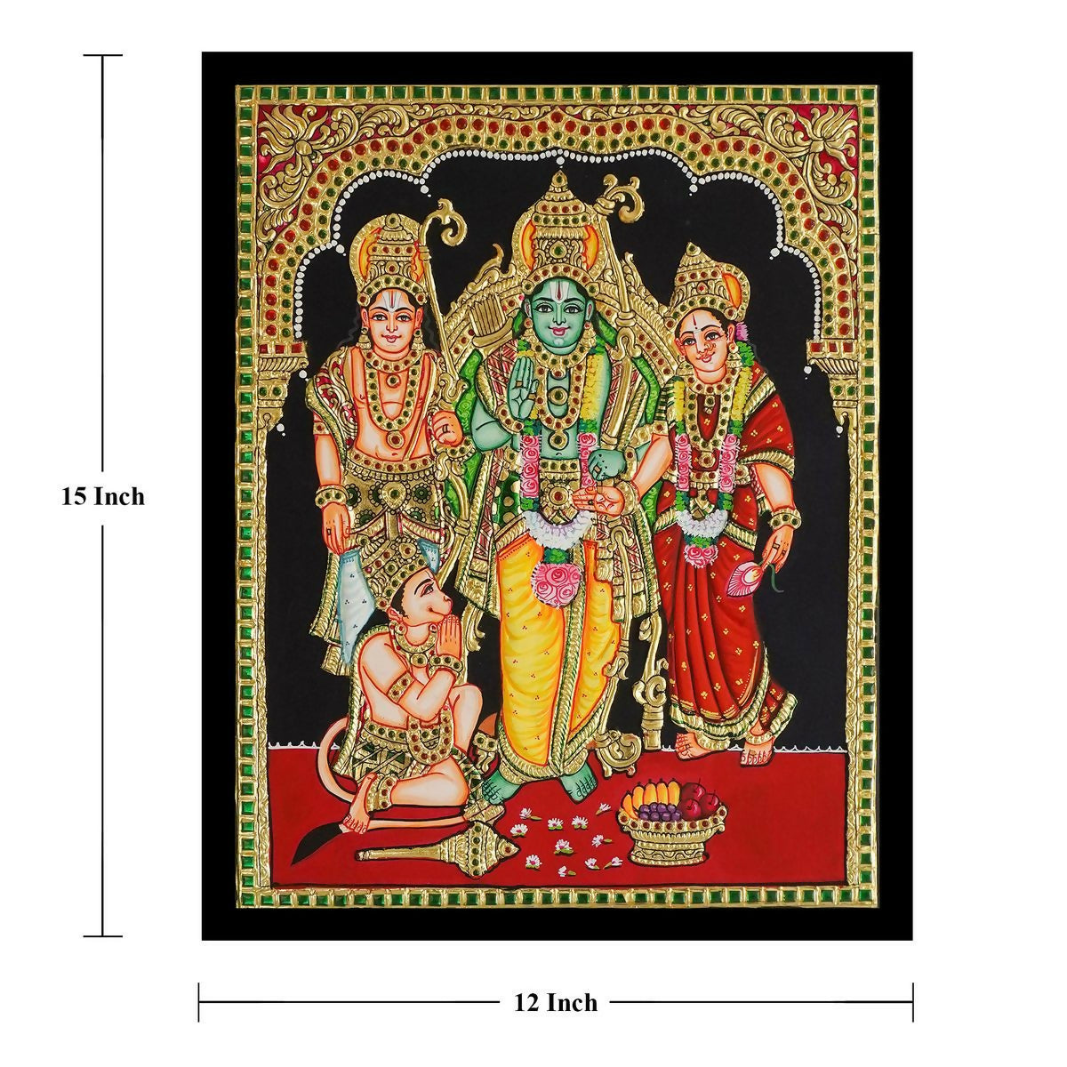 15*12" Kodandarama Tanjore painting Authentic with 22 Ct Gold Foil and Jaipur Gemstones, Unframed