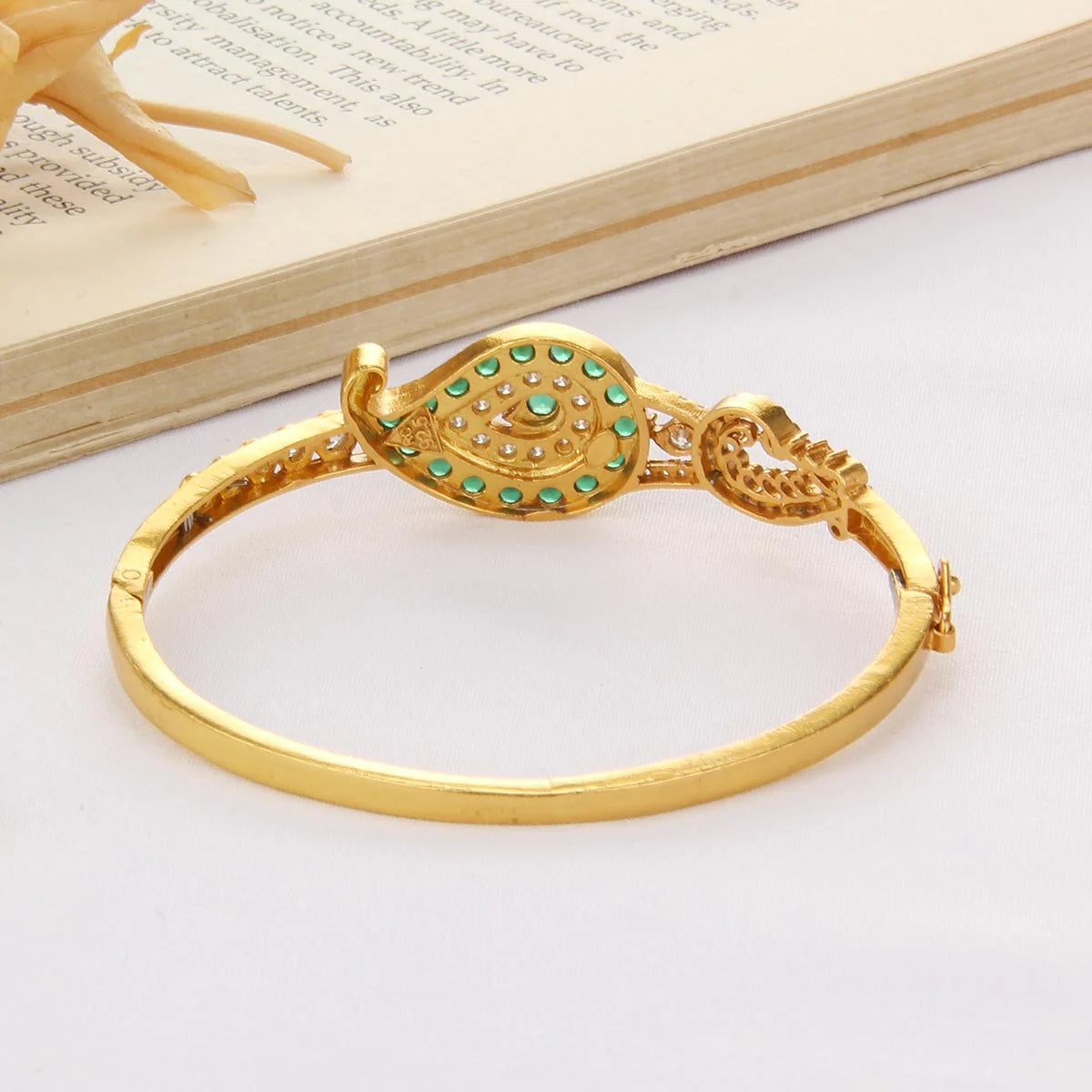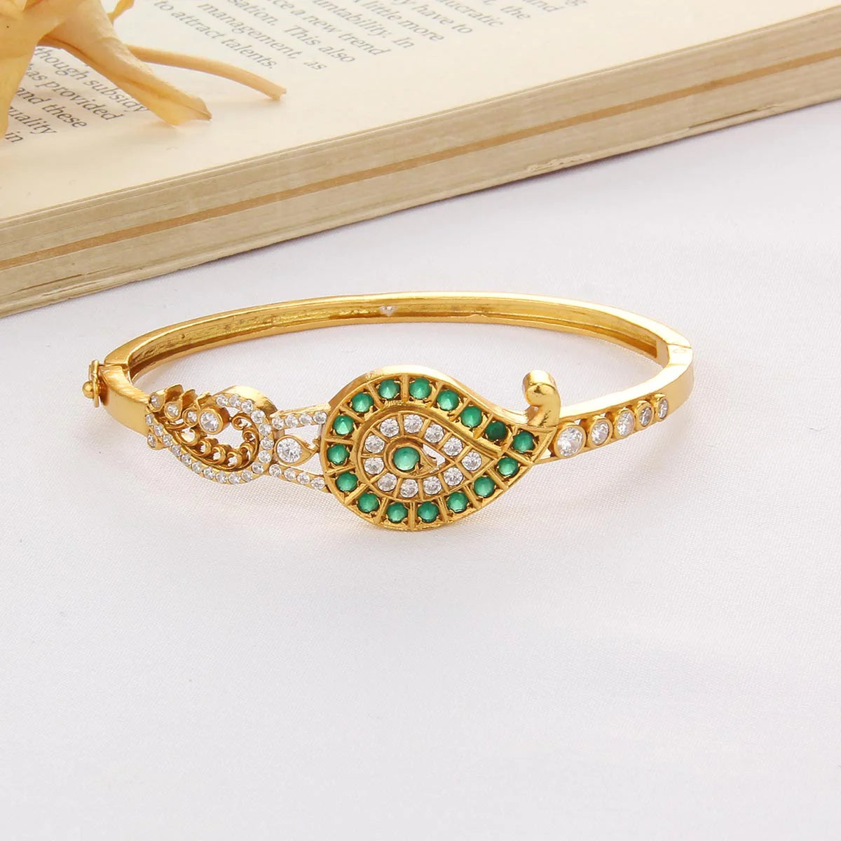 The Nidhra Stone Bracelet is a perfect blend of elegance and contemporary style. Crafted from 92.5% pure silver and plated with 24K gold, this bracelet features shimmering stones that catch the light beautifully, adding a subtle sparkle to your wrist. Lightweight and comfortable, it is ideal for weddings, festive occasions, or elevating everyday outfits with a touch of sophistication. A timeless accessory, it effortlessly enhances both ethnic and modern ensembles.