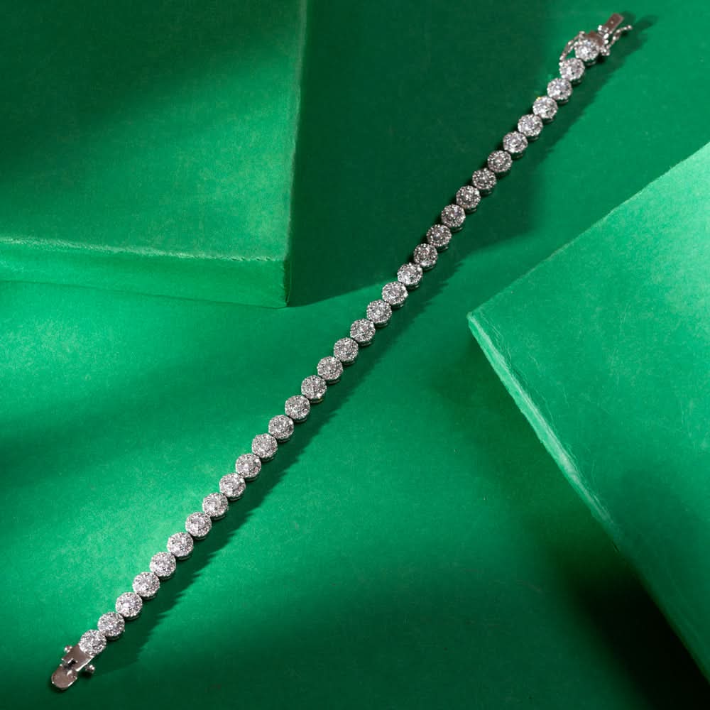 Pure 92.5 Silver CZ Stone Bracelet. Crafted from genuine sterling silver, this elegant bracelet is adorned with high-quality Cubic Zirconia stones that offer the brilliance of real diamonds. Its delicate design makes it perfect for layering or wearing solo, whether for casual outings or special occasions.
