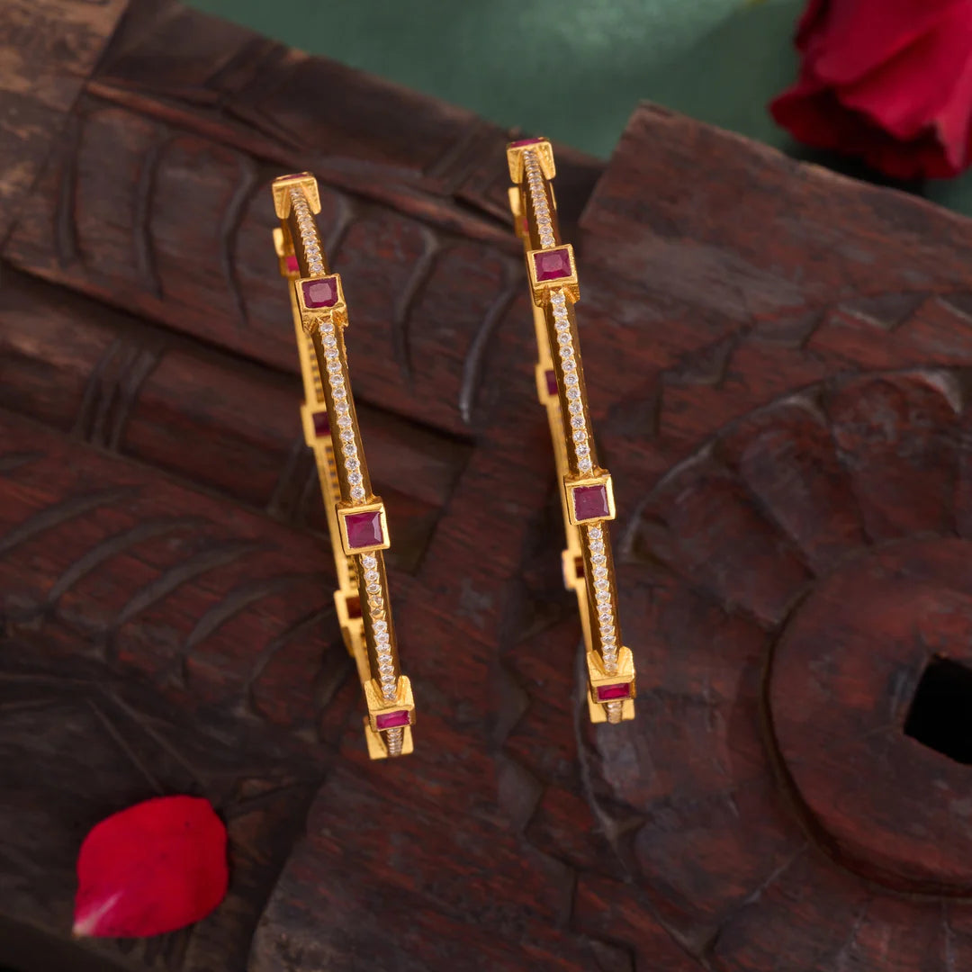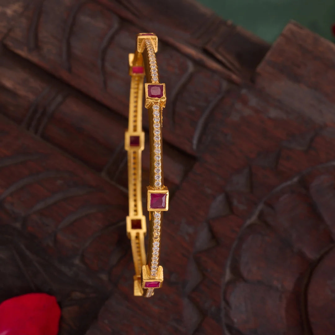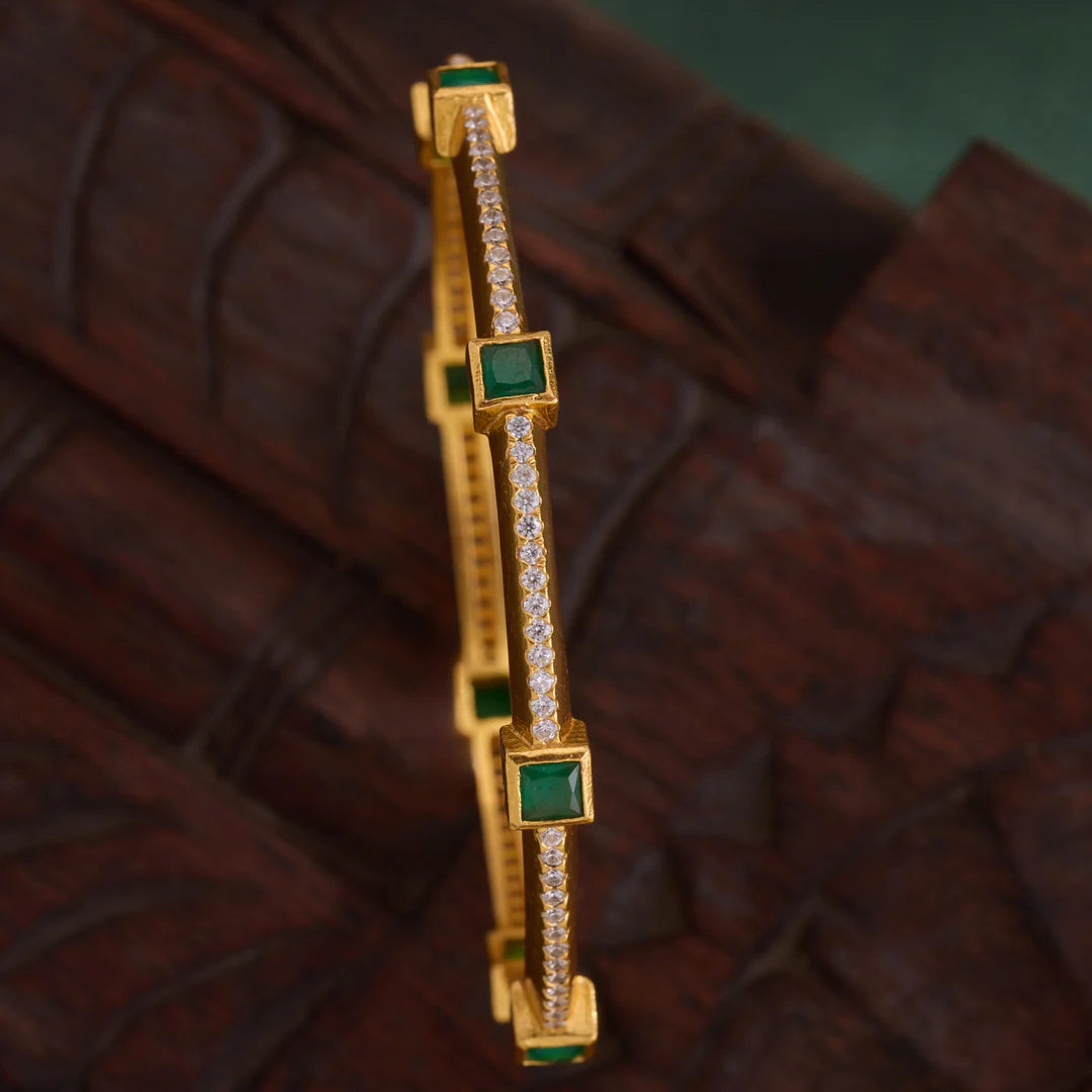 Squivva Bangles feature expertly designed Square-shaped Emeralds complemented by sparkling Cubic Zirconia stones. These bangles blend precision craftsmanship with elegant geometry, offering a refined accessory that enhances any ensemble with a touch of sophisticated brilliance. Ideal for those seeking a classic yet distinctive statement piece.