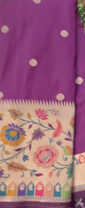 Authentic Plum Handloom Silk Saree with Zari Buttis-Borders and Meenakari Paithani Skirt Border | SILK MARK CERTIFIED