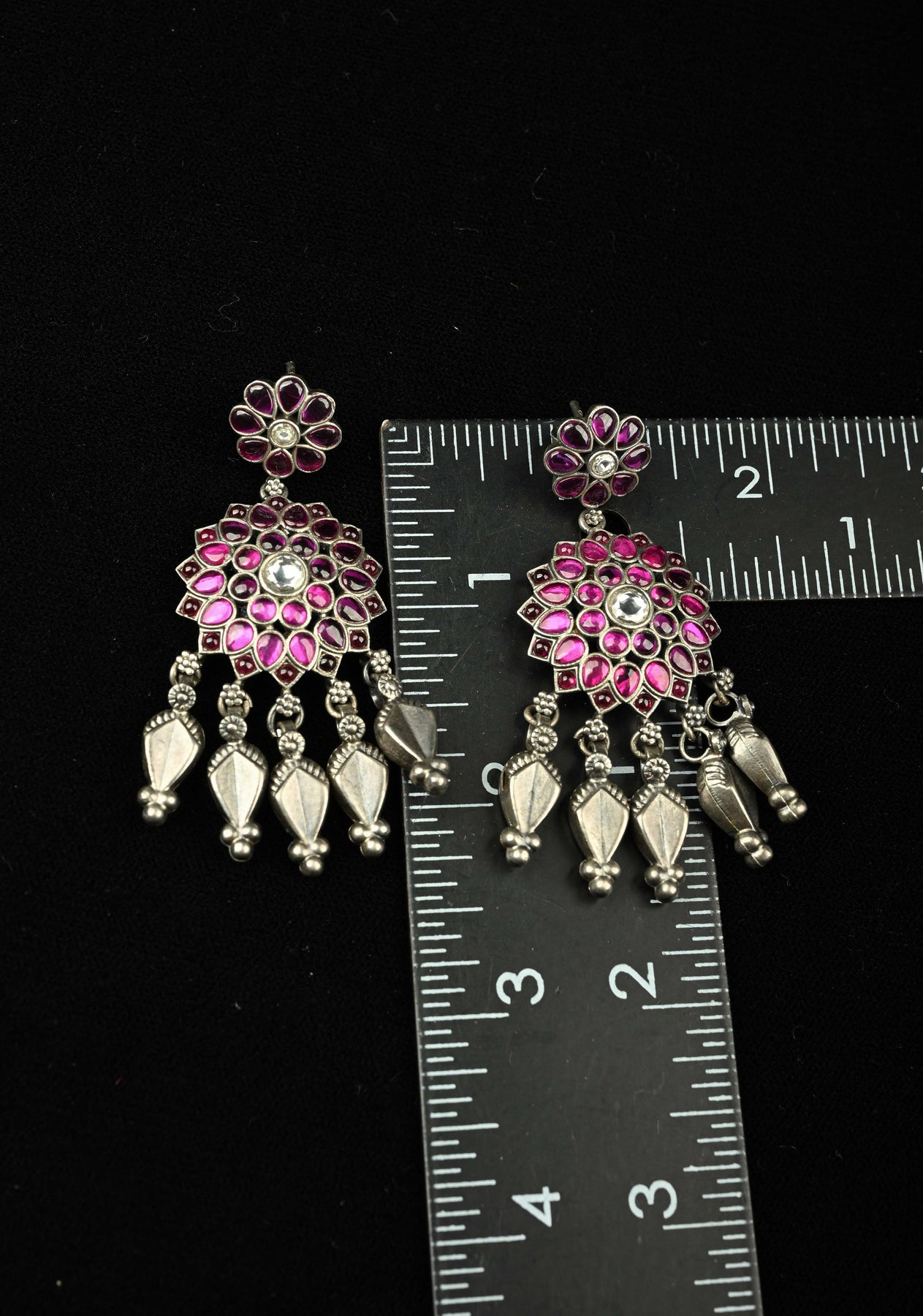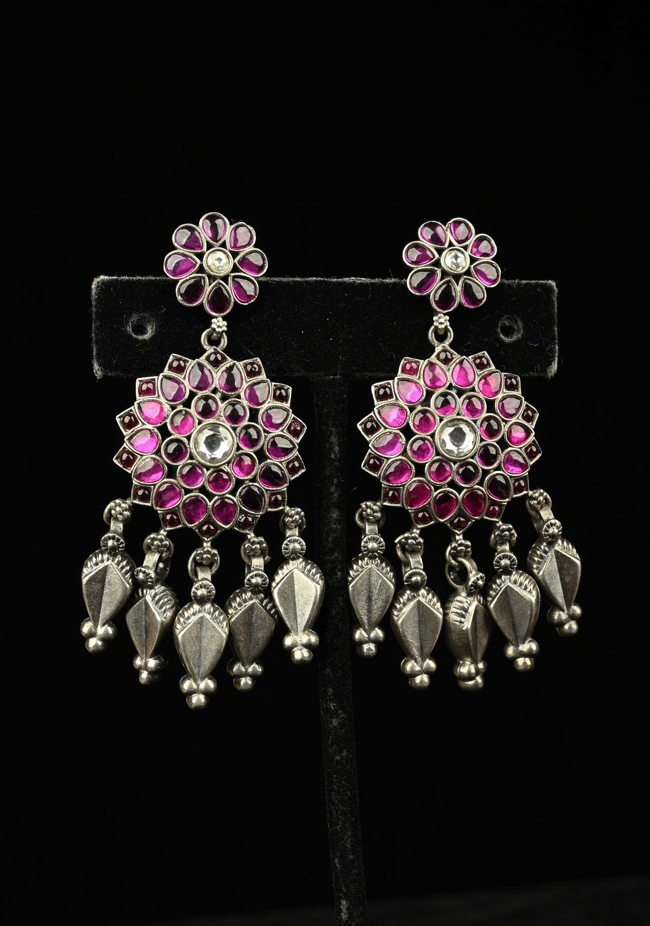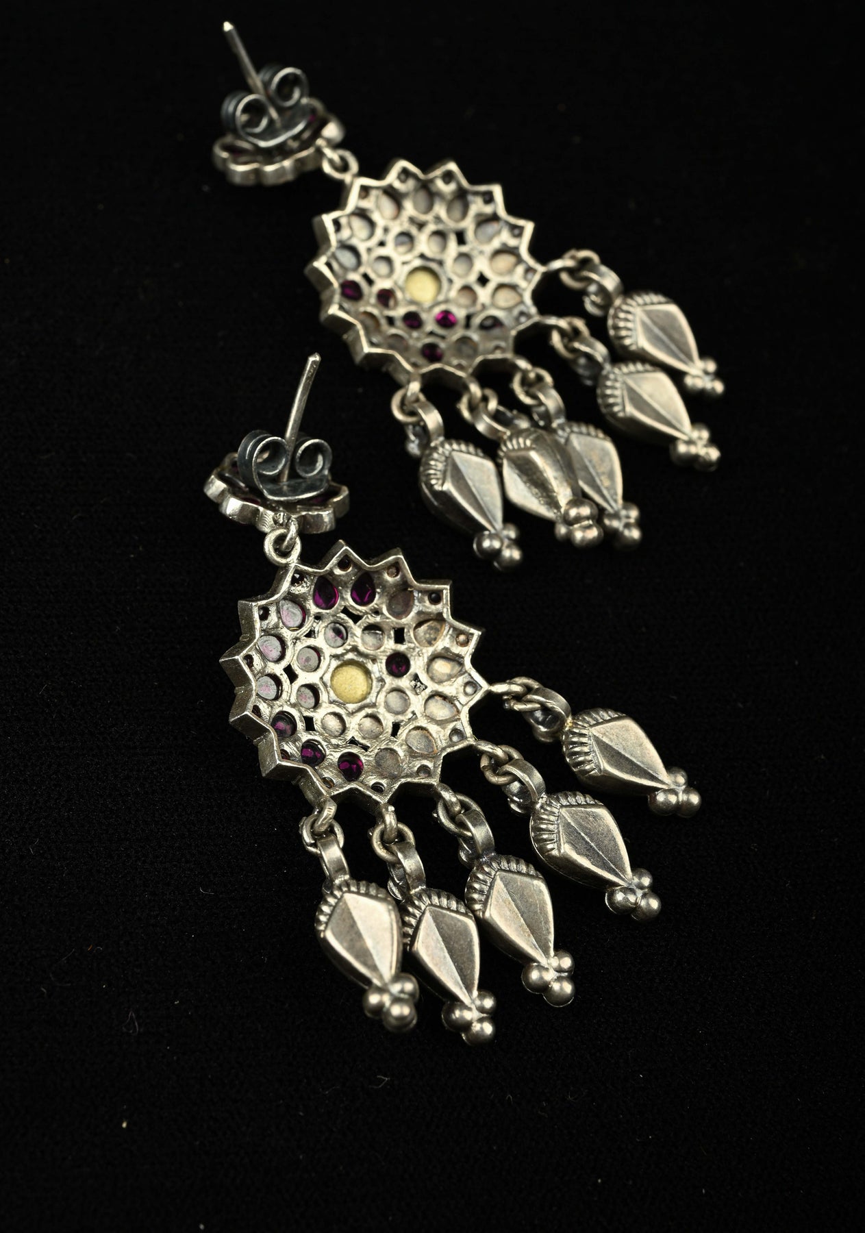 92.5 silver, Oxidised Earrings studded with semi-precious stones.