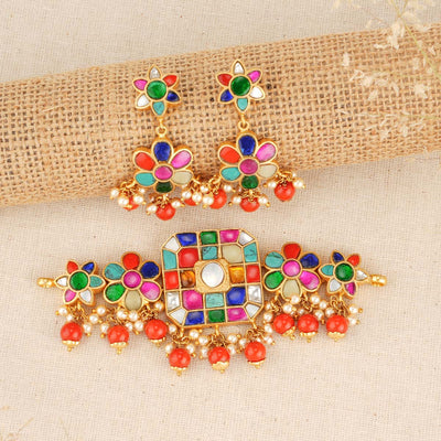 Navaratna 92.5 Silver, 24 kt Gold-Plated Radiant Kundan Choker Set