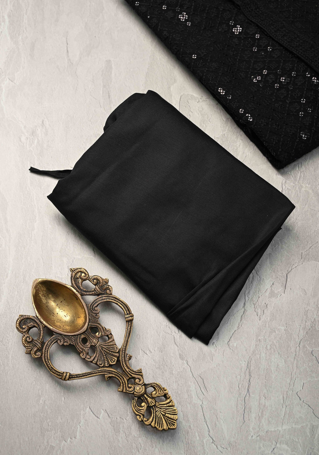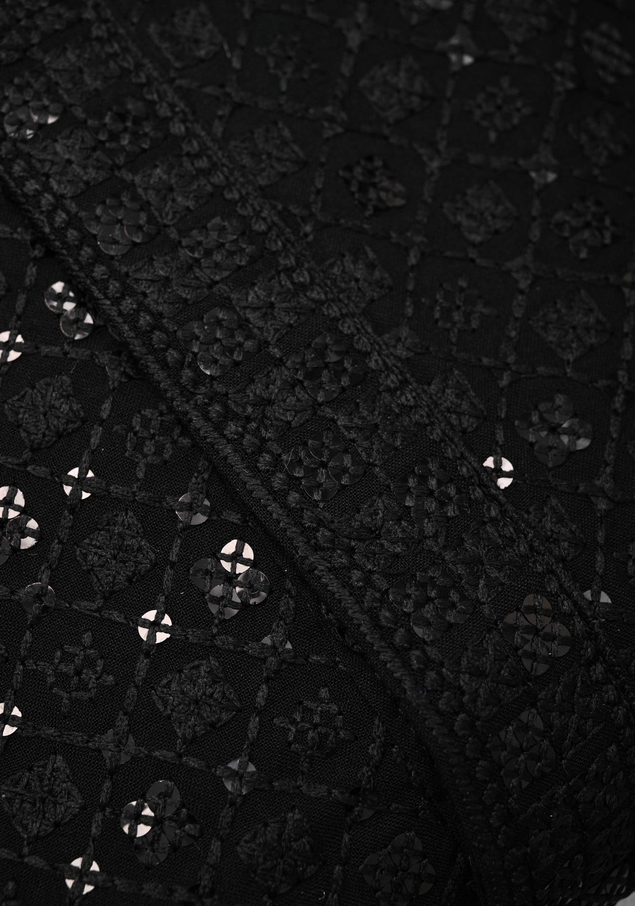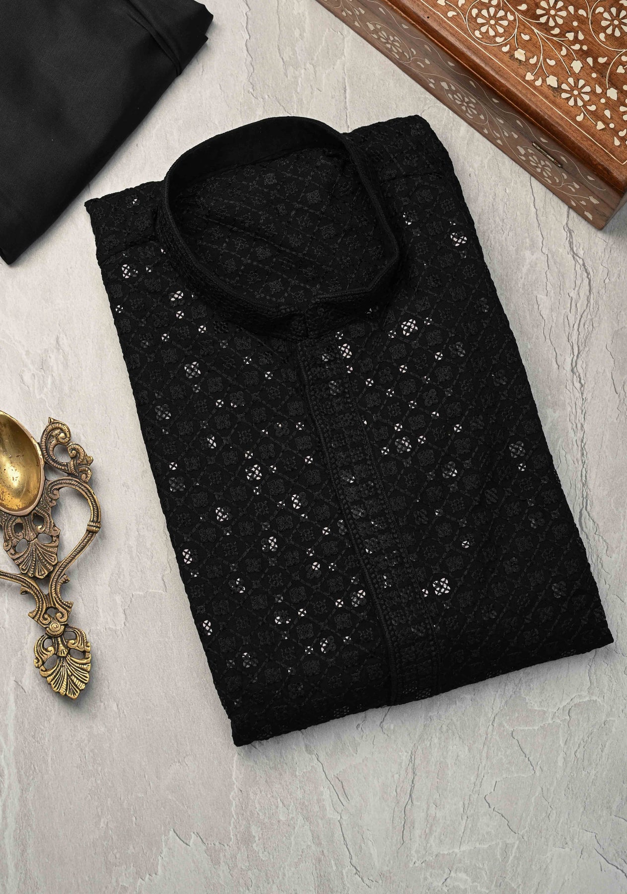 Black Chikankari Kurta with Sequins and Pajama Set for Men | Made to Order