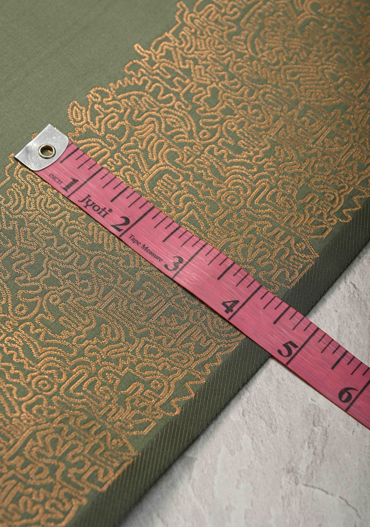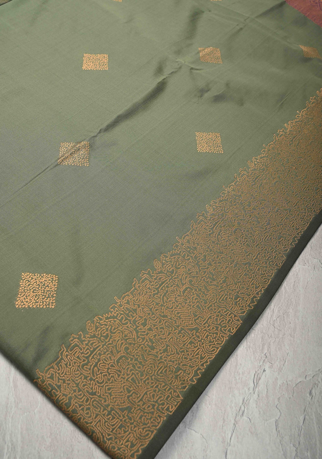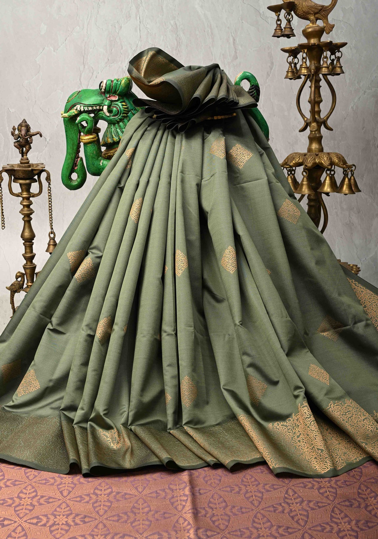 Pickle Green Kanchi Semi Silk Saree with Geometric Motifs and Zari Border